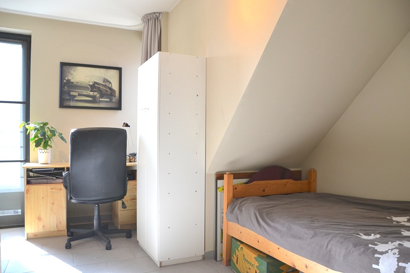 Beide slaapkamers beschikken over een verschuifbare wand, zodat de ene slaapkamer een uitbreiding van zijn van de leefruimte, en de andere slaapkamer een verruiming van de keuken zou kunnen betekenen. Tal van creatieve mogelijkheden in dit originele appartement! Er hoort eveneens een afgesloten autostaanplaats bij dit appartement, dat diep genoeg is om twee wagens achter elkaar te parkeren.