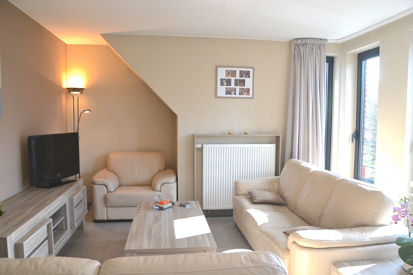 Via de lift of trap komen we op de tweede verdieping, waar dit recent appartement in een blokje van 2 appartementen, is gelegen.