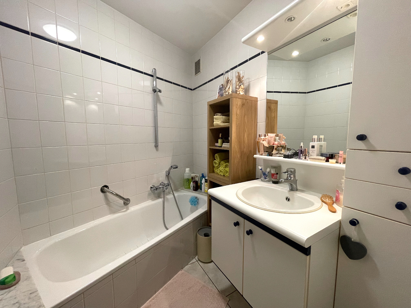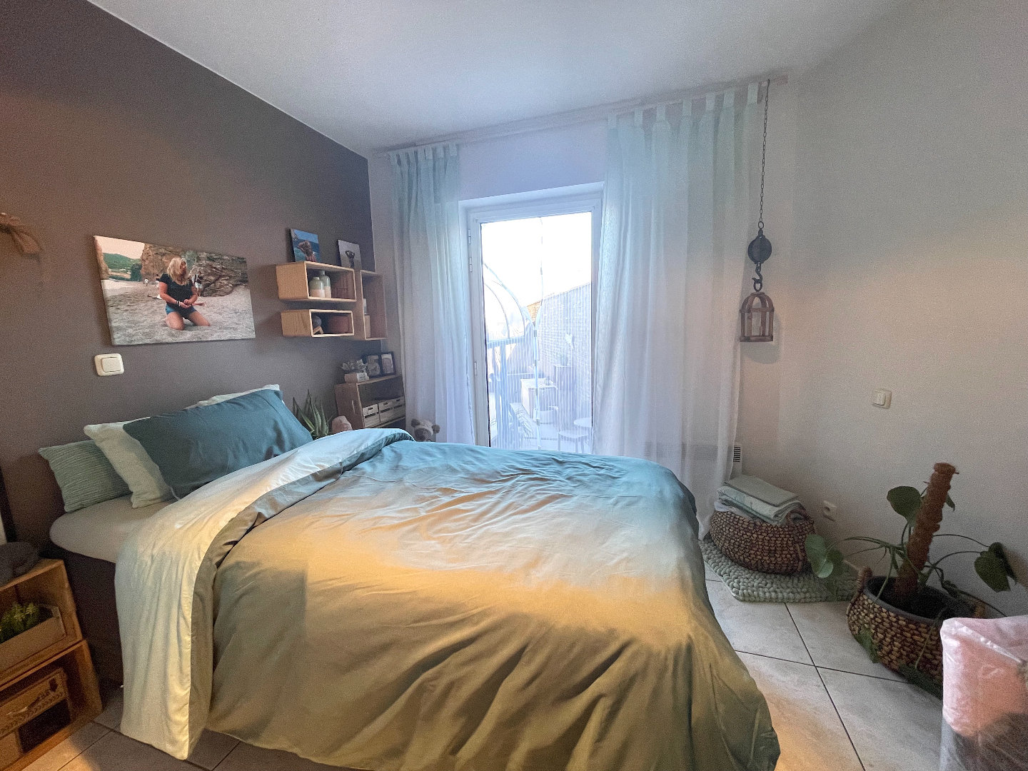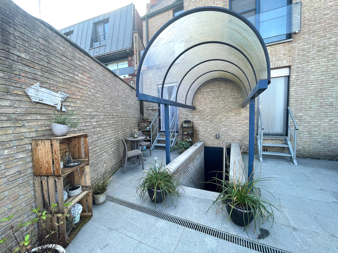 Bij deze flat horen een eigen kelderberging en een garagebox. Op de gemeenschappelijke binnenplaats kan u ook even de benen strekken.