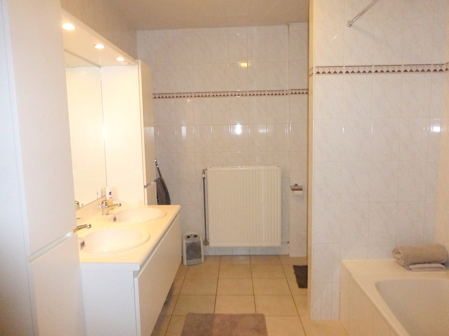 De slaapkamers (2 grote en 1 kleinere) zijn achteraan gelegen en de badkamer beschikt over een dubbele lavabo, toilet en bad.