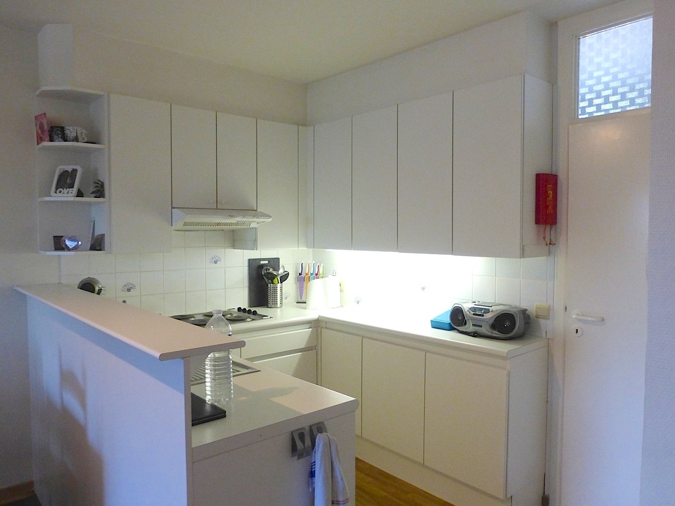 Via de trap gaan we naar de 2e verdieping. We komen het appartement binnen in de living met toffe open keuken. Aansluitend is er een handige berging. Verder is er 1 slaapkamer en een badkamer met lavabomeubel, toilet en ligbad.
