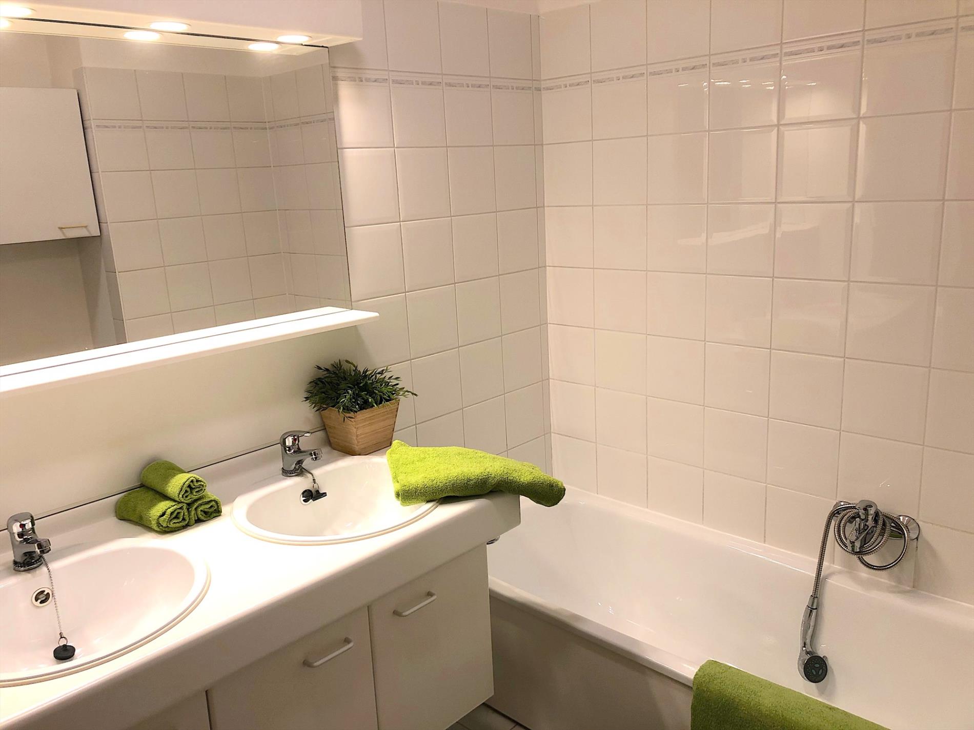 Verder vinden we nog 2 slaapkamers en de badkamer die voorzien is van een dubbel lavabomeubel en ligbad.