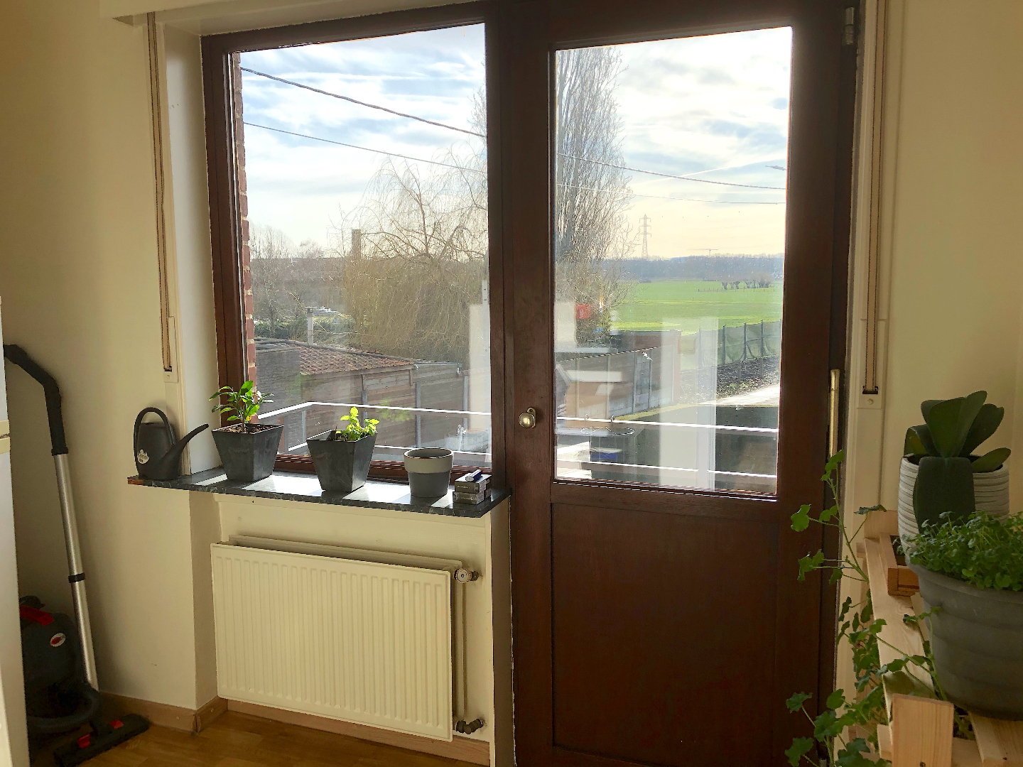 Achteraan het appartement is er een balkon met een open zicht op de groene omgeving.
