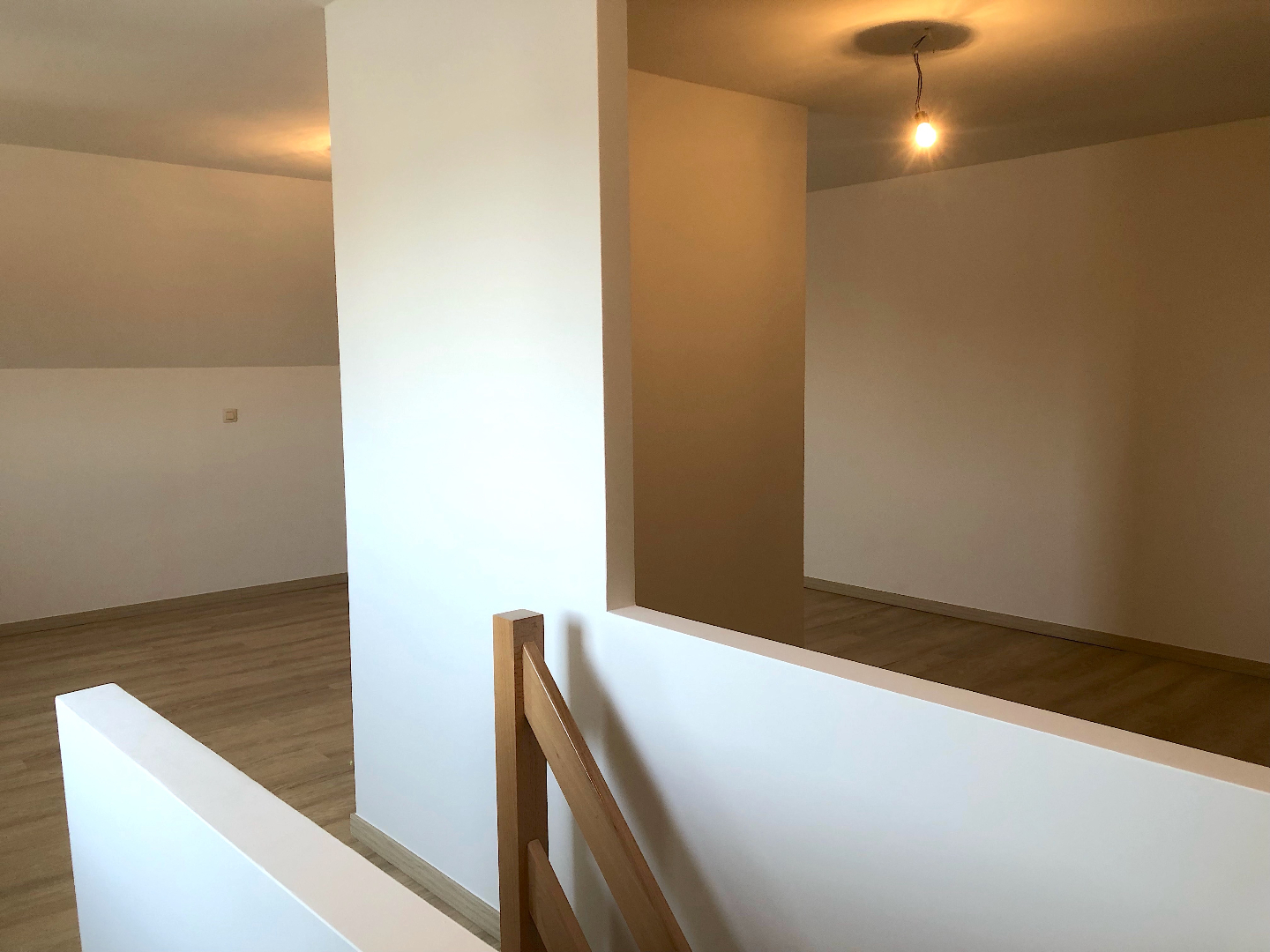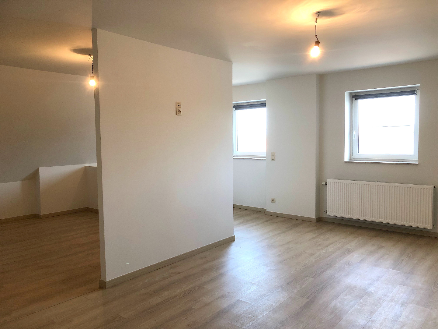 Via een private trap kunnen we naar de 3e verdieping. Daar vinden we een gigantische ruimte. Ideaal om te gebruiken als slaapkamer met dressing, bureau, hobbyruimte,....