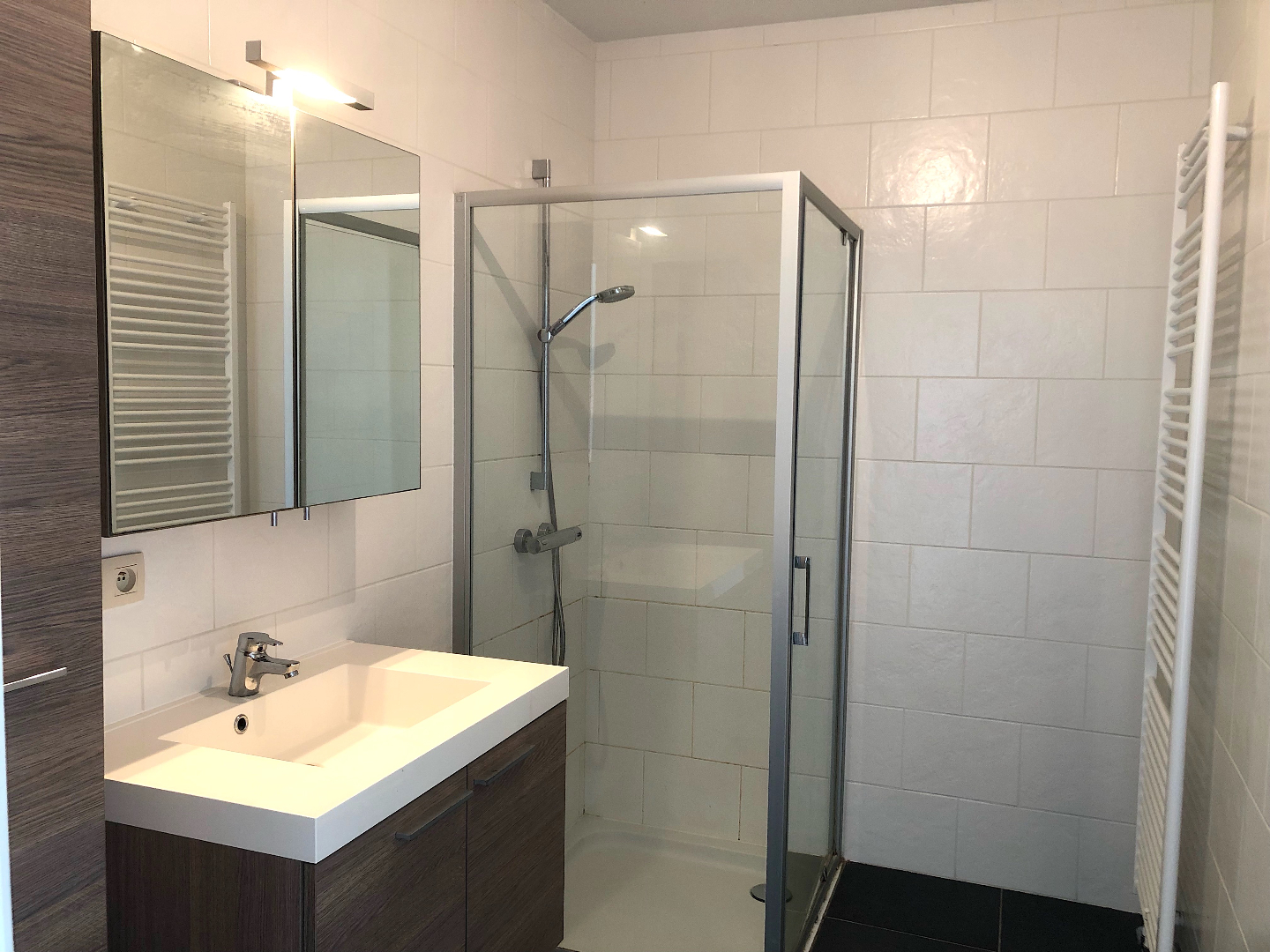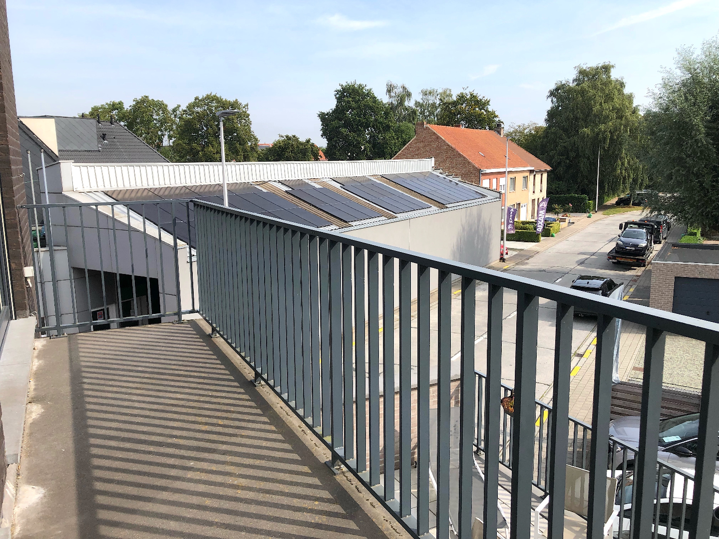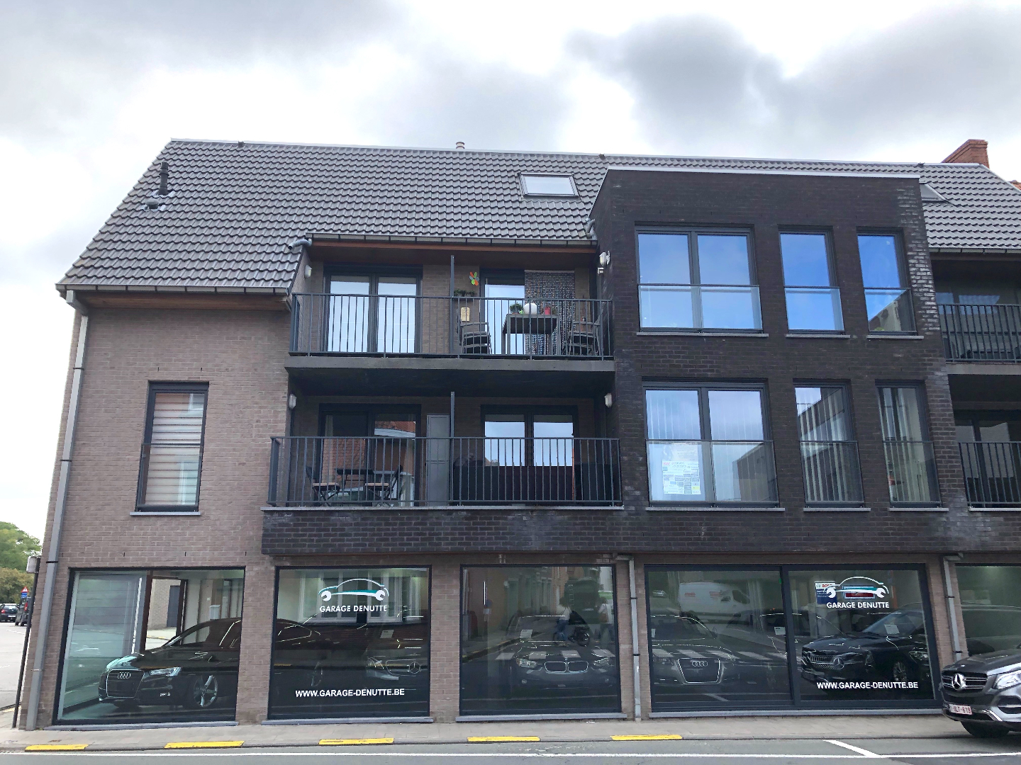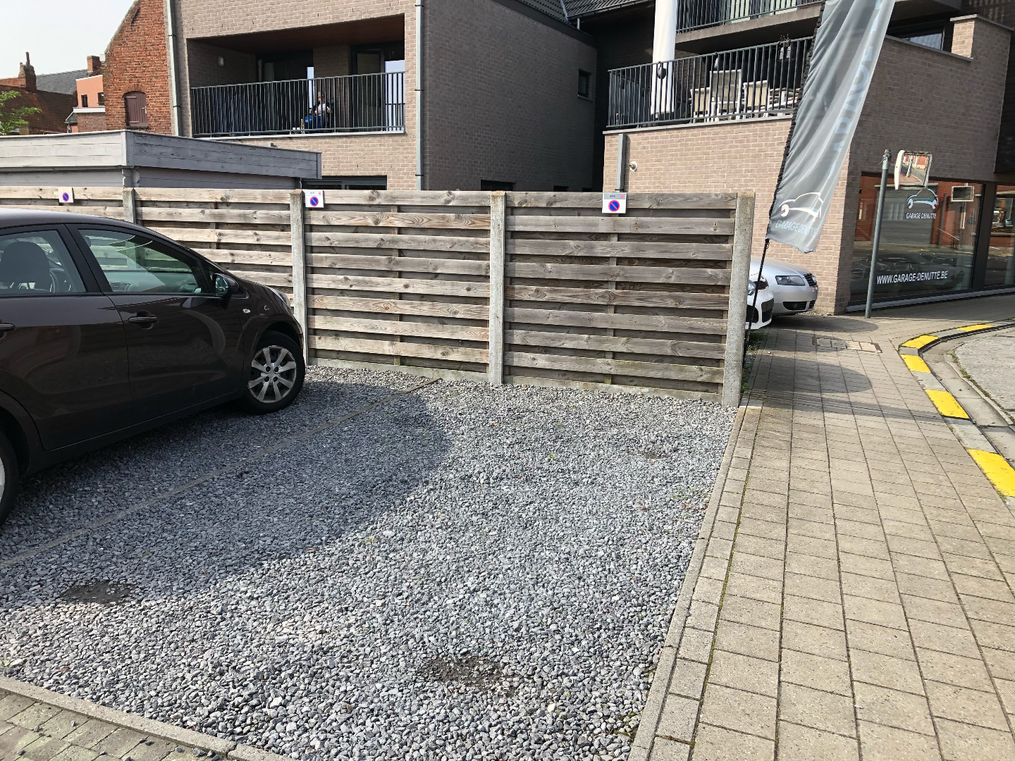 Achteraan hoort een garagebox en een autostaanplaats bij het appartement.