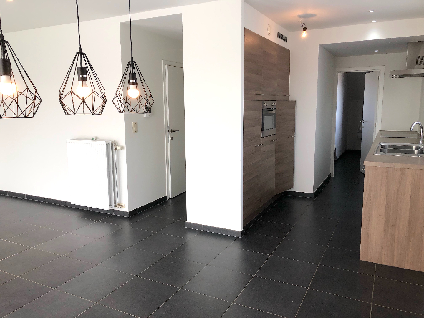 Via de lift komen we op de 2e verdieping van deze verzorgde residentie. De living is achteraan gelegen en dankrij de grote schuiframen zeer lichtrijk. Van hieruit kunnen we naar het terras aan de achterzijde. De open keuken is voorzien van alle toestellen en veel kastruimte. Aansluitend is er een handige berging. Verder vinden we nog een apart toilet, badkamer met lavabomeubel en douche, en een slaapkamer met terras.