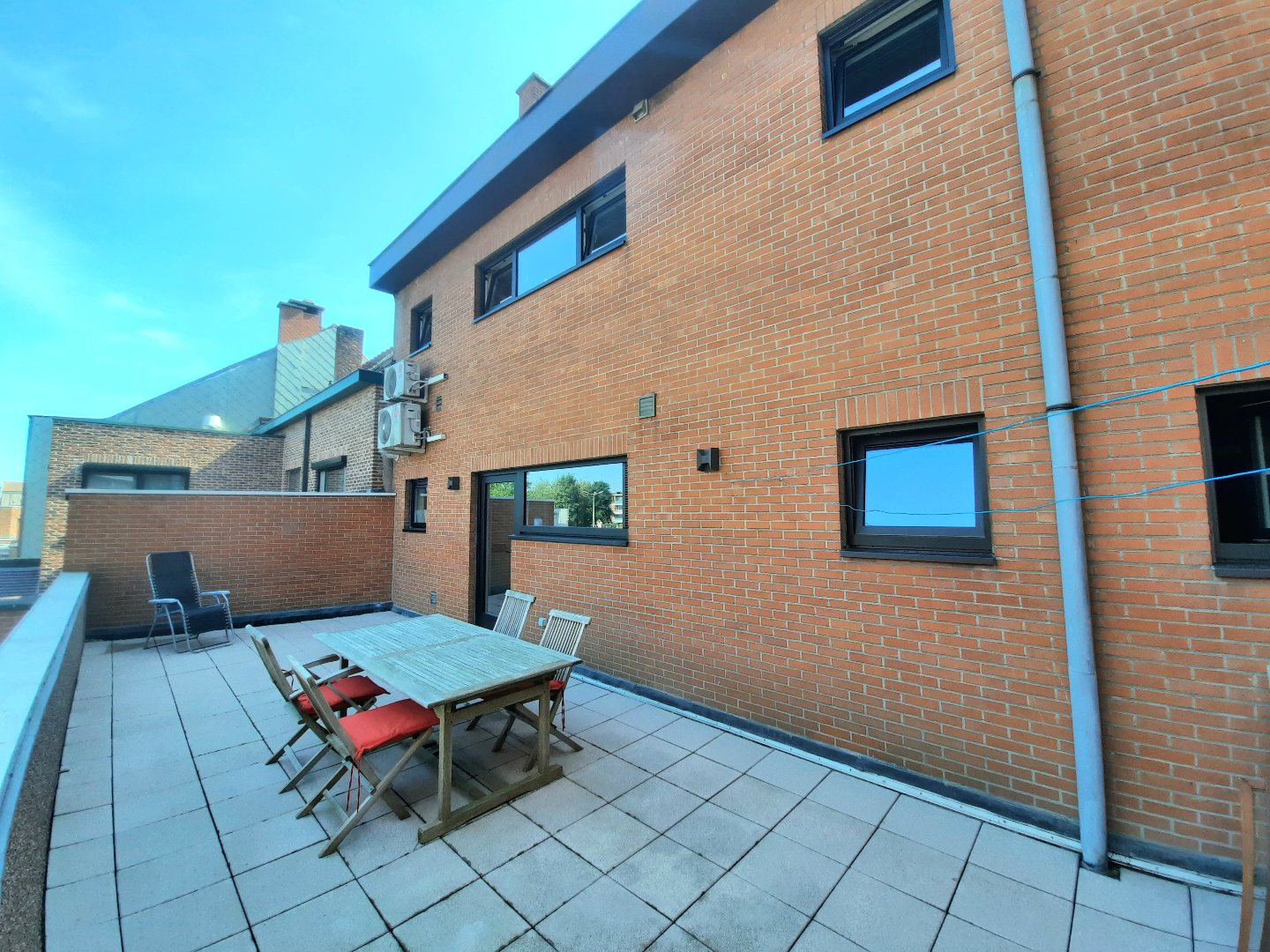 Dit appartement ligt op de eerste verdieping van een blokje met 2 wooneenheden en een handelsgelijkvloers. Het appartement is met de trap bereikbaar. Via de inkomhal met apart toilet komen we in de lichtrijke en grote leefruimte aan de voorzijde van het gebouw. Het parket en de grote raampartijen zorgen ervoor dat het hier zalig vertoeven is. Deze ruimte sluit onmiddellijk aan bij de eveneens ruime keuken. Deze keuken geeft toegang tot het terras van maar liefst 30 m2! Naast de keuken is er een handige berging waar ondermeer plaats is voor een diepvriezer, wasmachine en droogkast. Aan de achterzijde van het appartement zijn er 2 slaapkamers en een praktische badkamer met inloopdouche en lavabomeubel. Aan de voorzijde is er nog een derde slaapkamer.