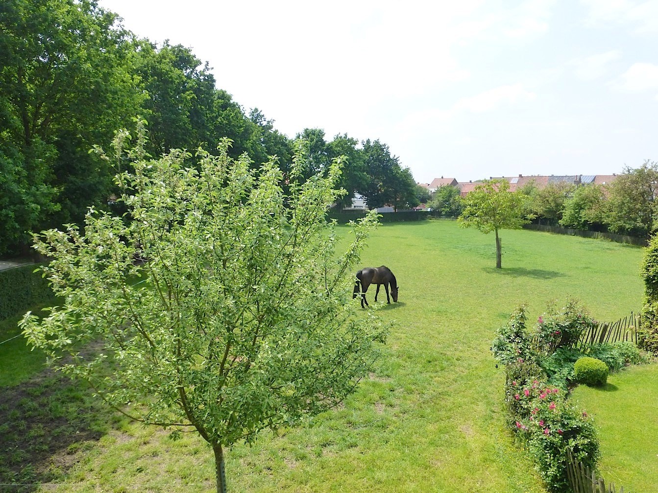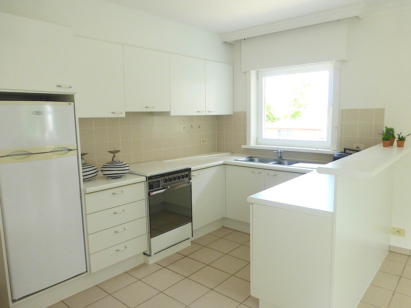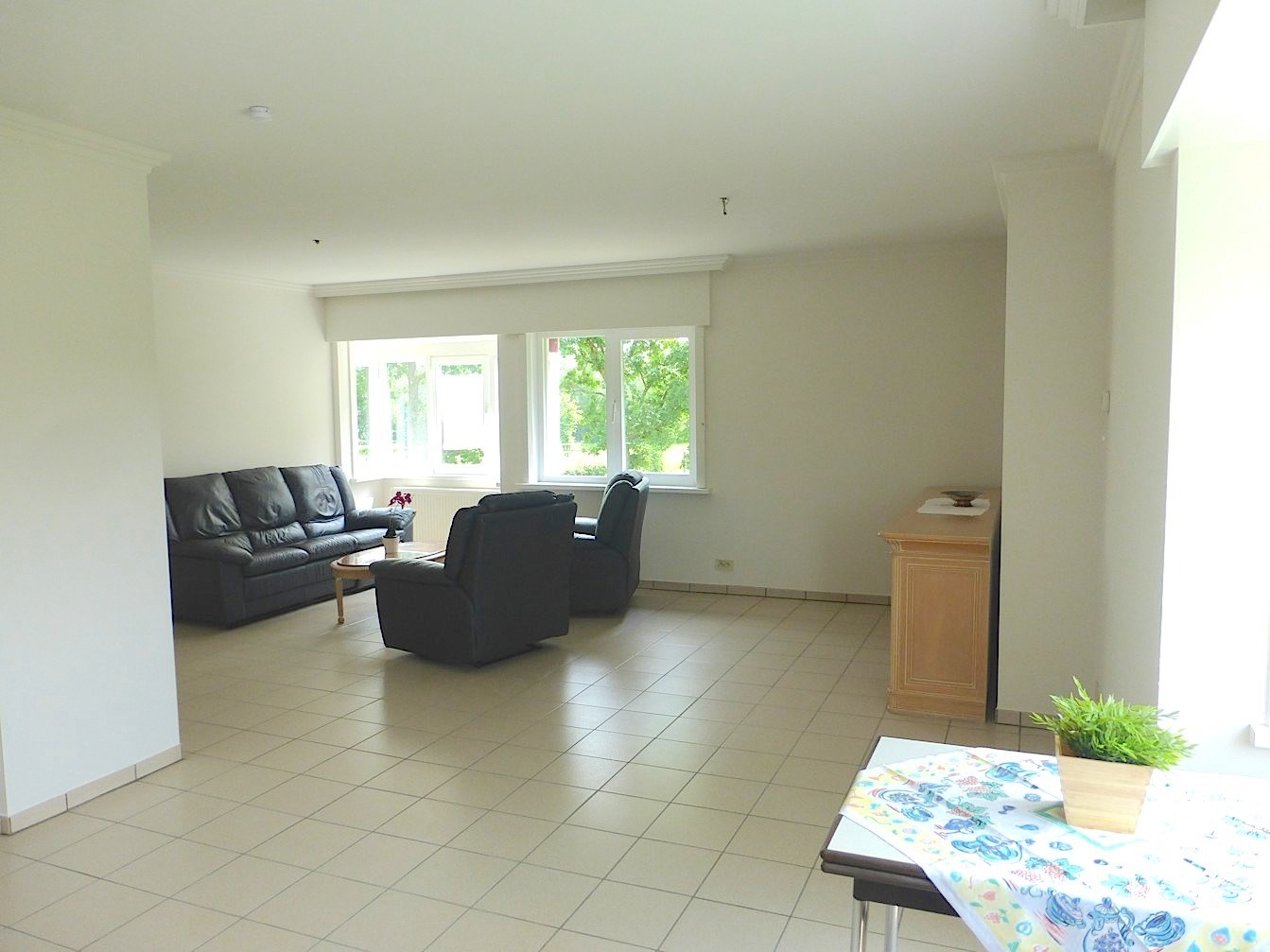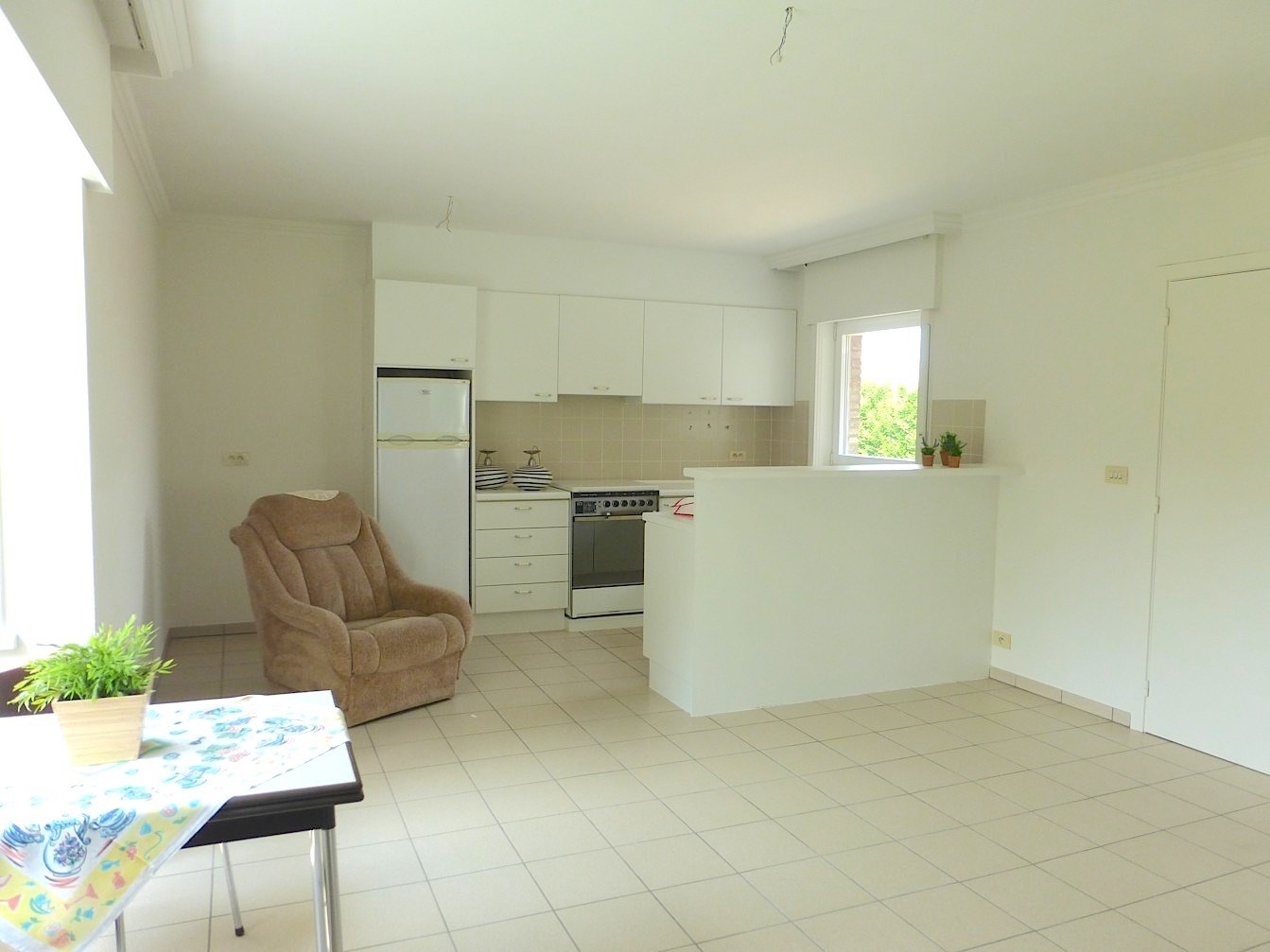 Op de eerste verdieping van dit kleine blokje van slechts 2 appartementen vinden we dit zeer aangename appartement. Via de ruime inkomhal komen we in de living. Deze is zeer ruim en door de vele ramen heel lichtrijk. Van hieruit hebben we een prachtig zicht op de groene omgeving. Er is een leuke, gerieflijke open keuken met aansluitend een handige berging.
