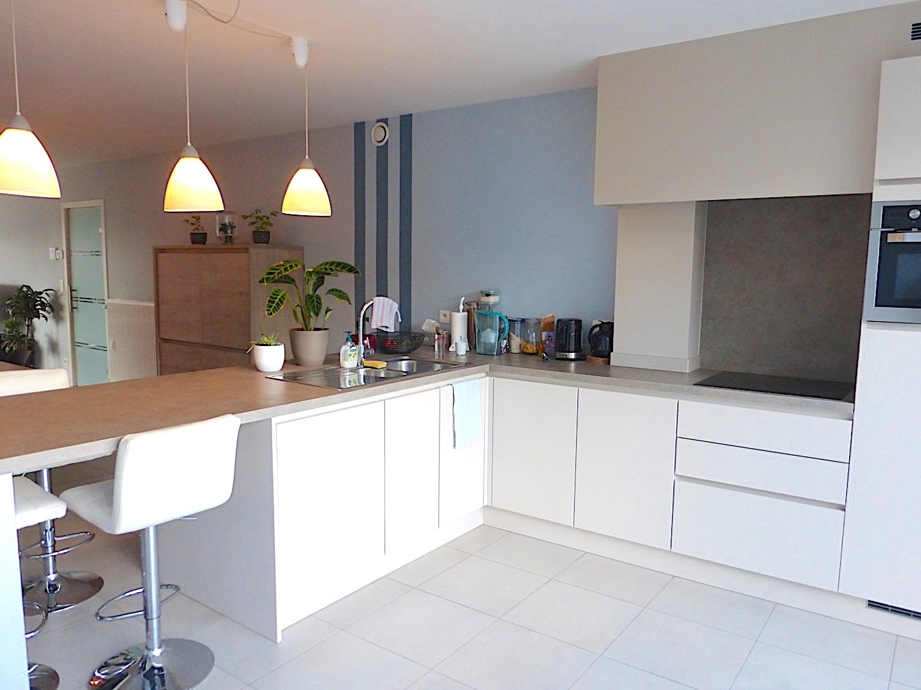 De keuken is open en voorzien van alle nodige toestellen (oven, ceramisch vuur, ijskast, vaatwasser) en een handige ontbijttafel.