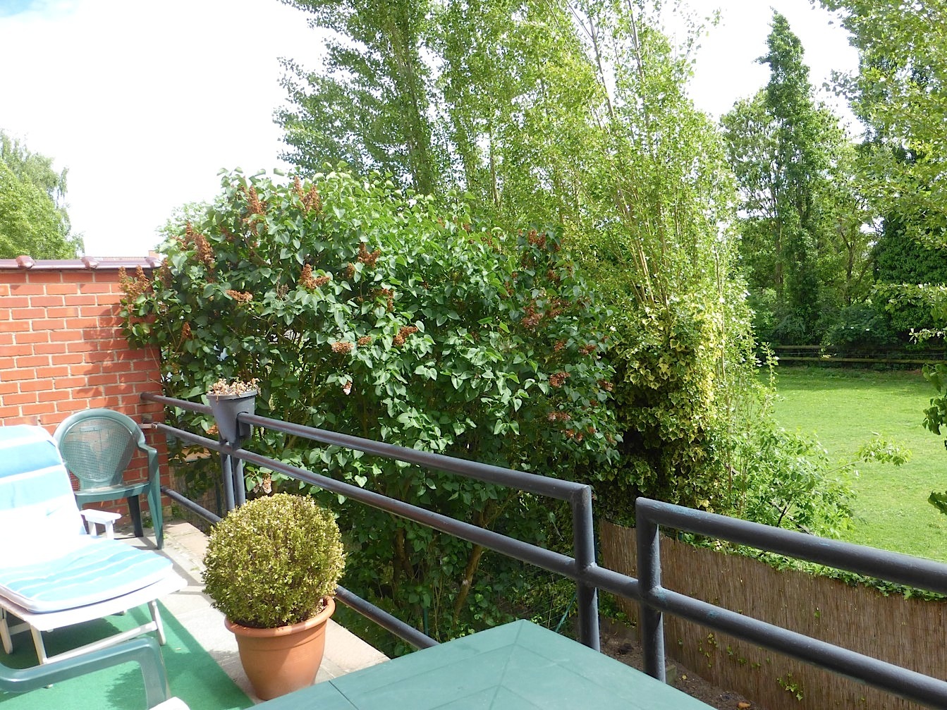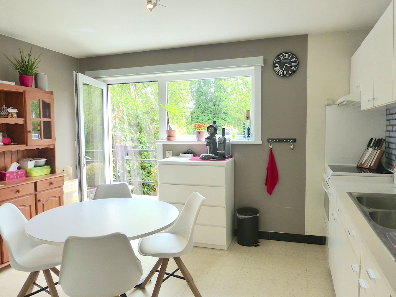 De 1e verdieping beschikt over een apart toilet, zeer gezellige living in L vorm en een keuken met eethoek. Aangrenzend is er het leuke zuid gericht terras. Van hieruit hebben we een mooi groen zicht.