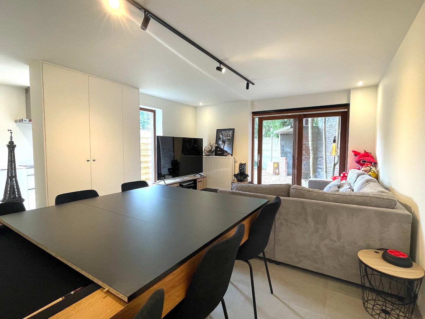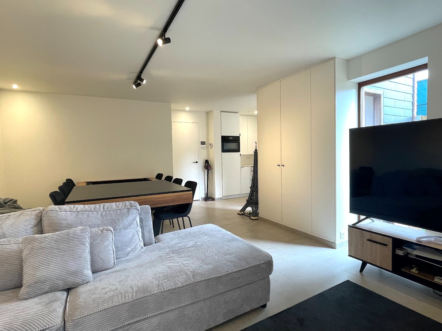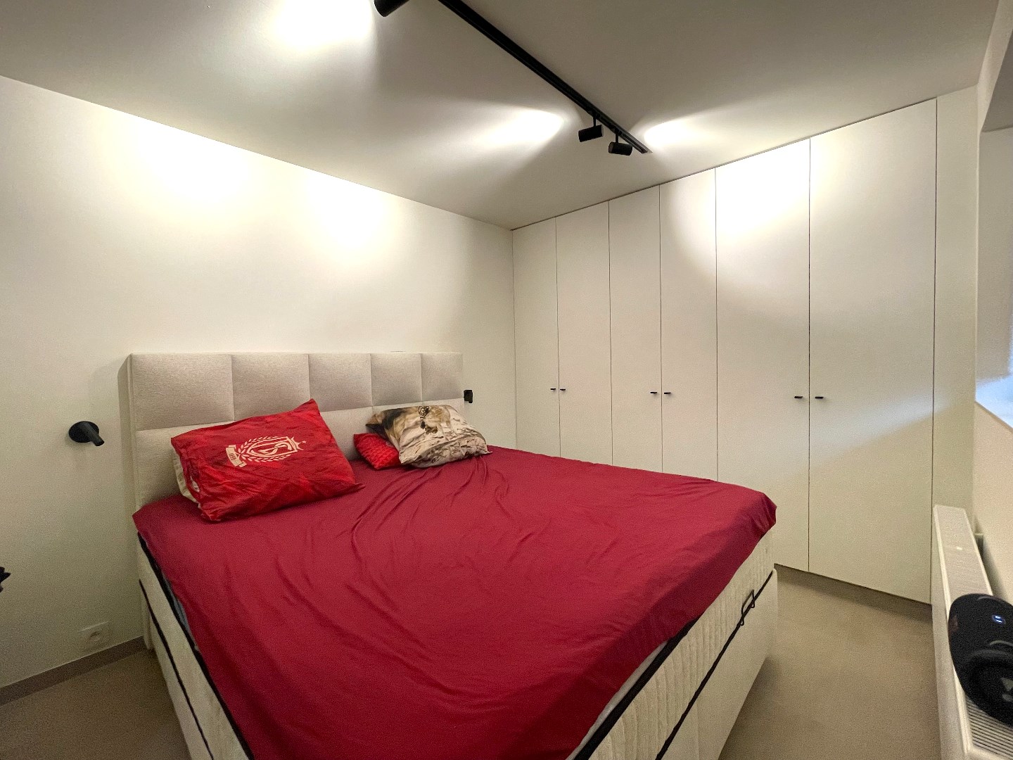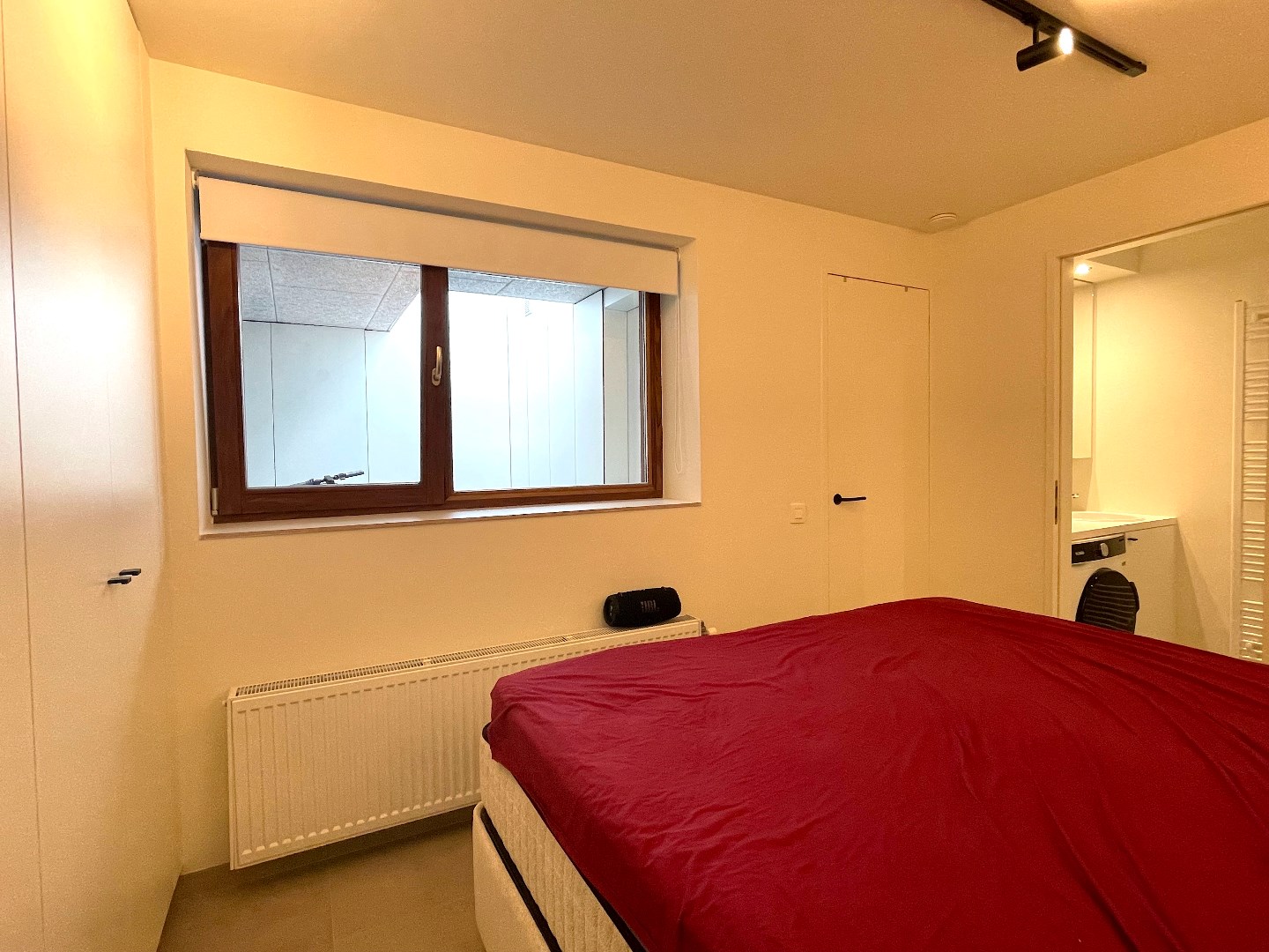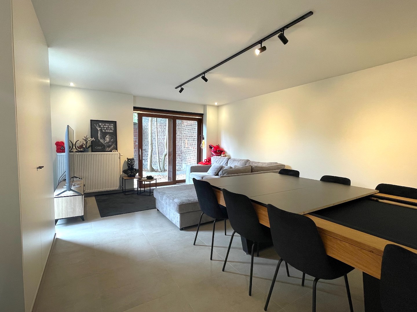 Pal in het centrum vinden we op de gelijkvloerse verdieping van dit mooie pand een al even knap appartement. Door de poort stappen we binnen. We passeren de inkomplaats met fietsenberging en stappen het appartement aan de achterzijde binnen. Meteen valt de hoogwaardige afwerking op. In de leefruimte met open keuken krijgen we door de vele ramen heel veel lichtinval binnen. De ingerichte keuken is puur maatwerk en biedt veel bergruimte. Vanuit de keuken en doorheen het schuifraam kunnen we naar de mooie stadstuin. Het is hier zalig genieten. De oriëntatie is er schitterend! Er is één slaapkamer met vaste kasten en een apart toilet. De badkamer beschikt over een lavabo en mooie inloopdouche. Er is ook plaats om de wasmachine te plaatsen.