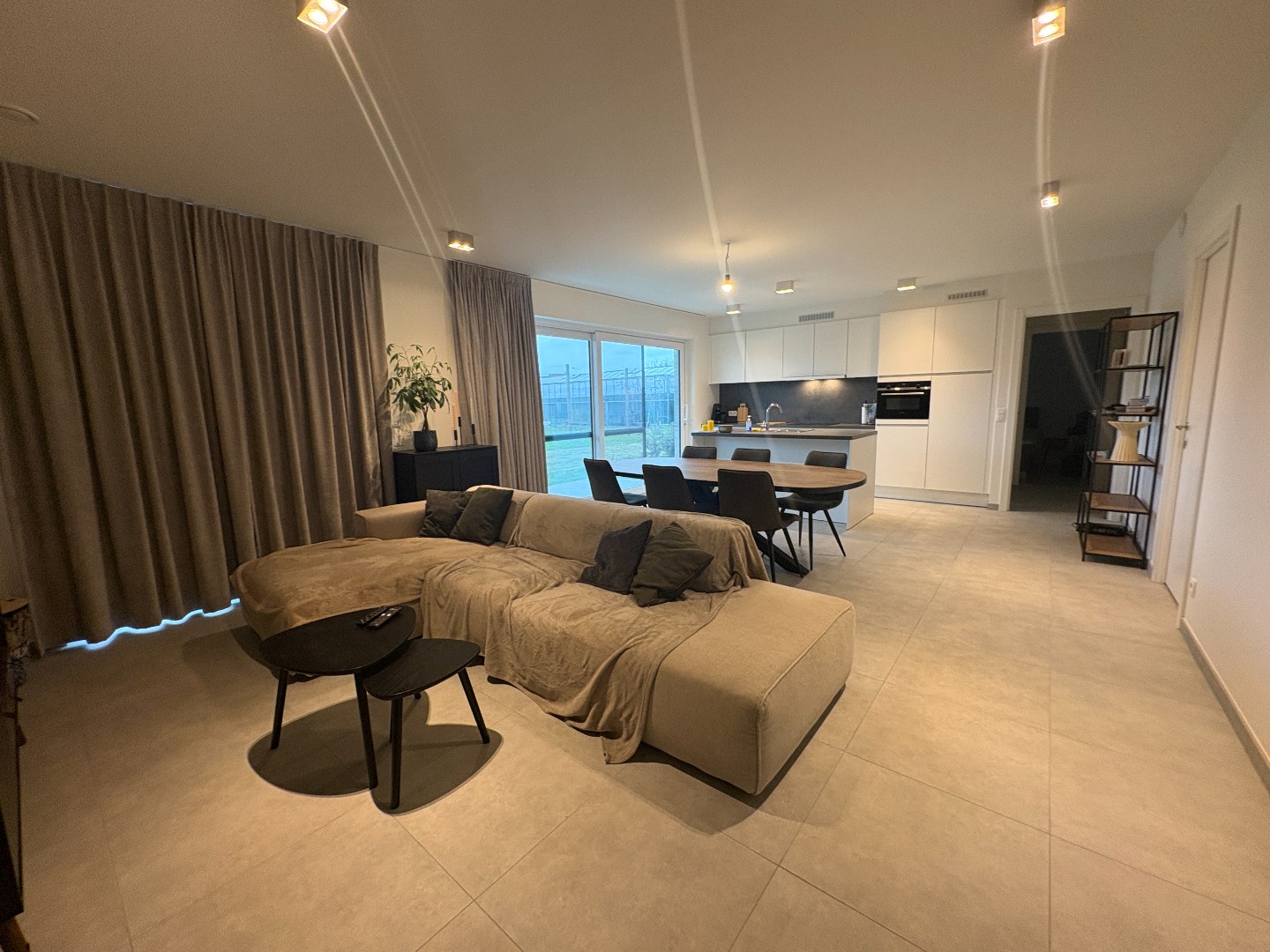 Dit nieuwbouwappartement is gelegen op de gelijkvloers verdieping van een kleine residentie. Via de voordeur komen we rechtstreeks in de leefruimte binnen met een mooie volledig ingerichte open keuken. Deze lichtrijke ruimte kijkt uit op het terras en heeft een open zicht op tuingrond rondom de residentie. Naast de leefruimte is een grote berging aanwezig, voorzien van aansluiting voor wasmachine en droogkast.