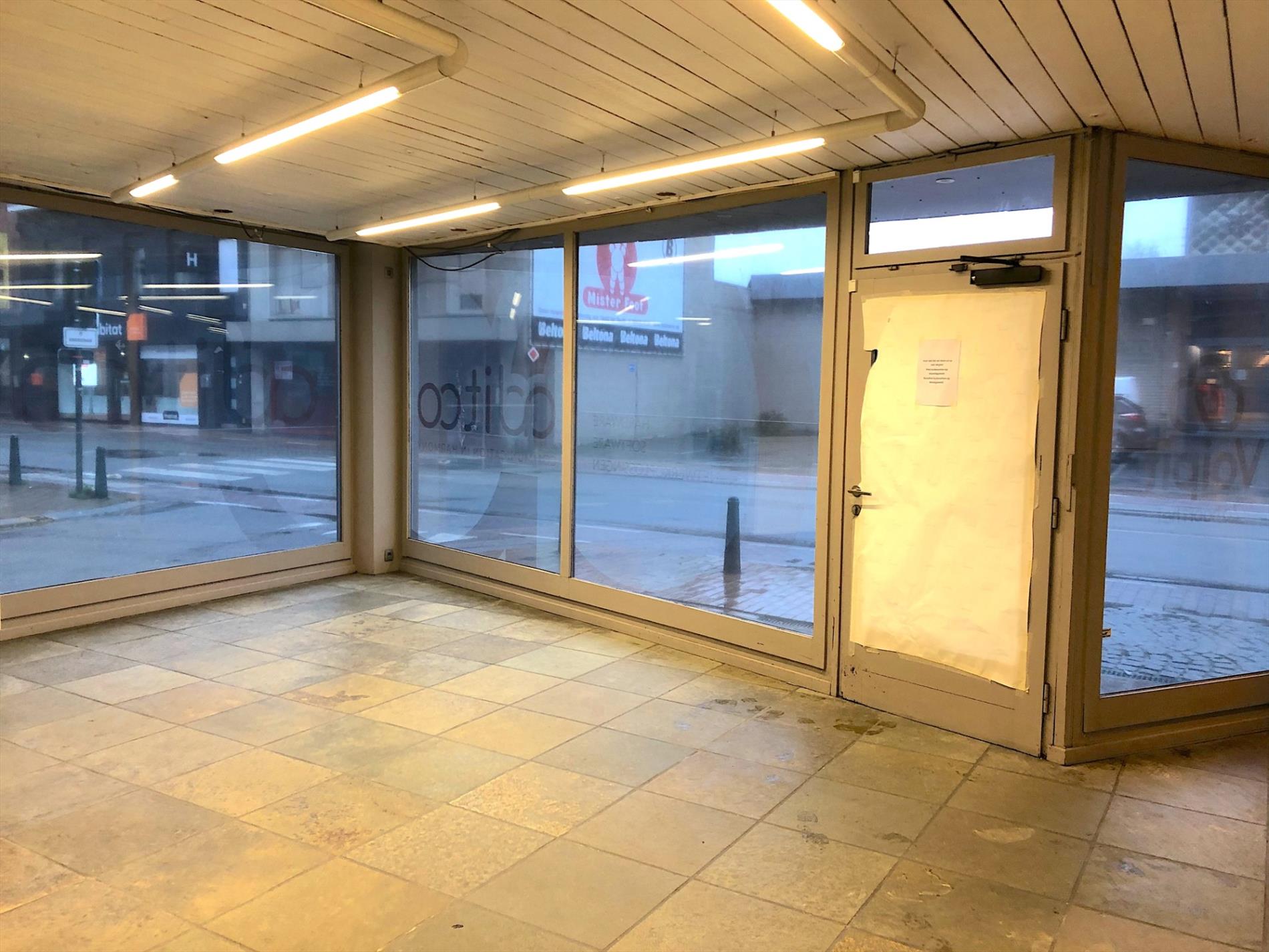 In het centrum van Wevelgem vinden we dit zeer verzorgde hoekpand. Door de vele ramen geniet deze winkelruimte van zeer veel licht en visibiliteit. De mooie grote open ruimte biedt mogelijkheden om allerlei activiteiten te starten. Zowel als toonzaal, kantoor, vrij beroep,... is deze locatie uitermate geschikt. Achteraan is er op heden een aparte bureelruimte en een berging. Desgevallend kan dit ook open gemaakt worden, zodat de winkelruimte nog groter wordt.
