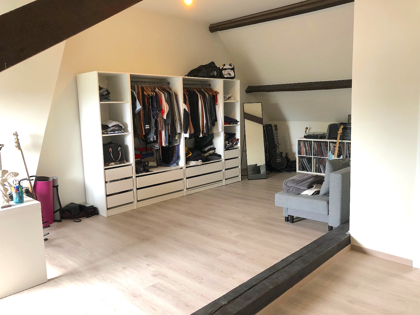 Op de 2e verdieping vinden we een grote polyvalente ruimte die kan dienen als hobbyruimte, bureau of slaapkamer. Er is tevens nog een aparte slaapkamer en een toilet.