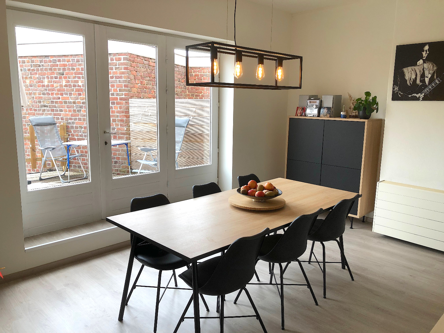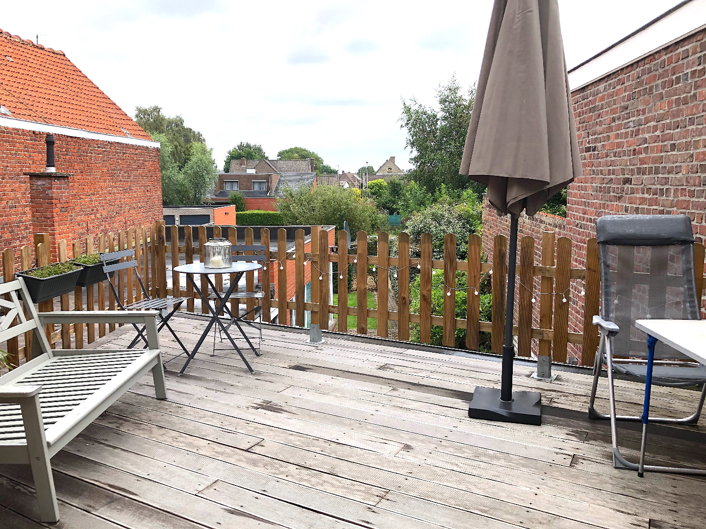 Via een aparte ingang komen we in een hal, waar oa een fiets kan gestald worden. Met de privé trap gaan we naar de 1e verdieping. Daar vinden we een living met nieuwe open keuken en een aparte leuke zithoek met toegang tot het ruime terras. Het is er genieten in alle rust en privacy!