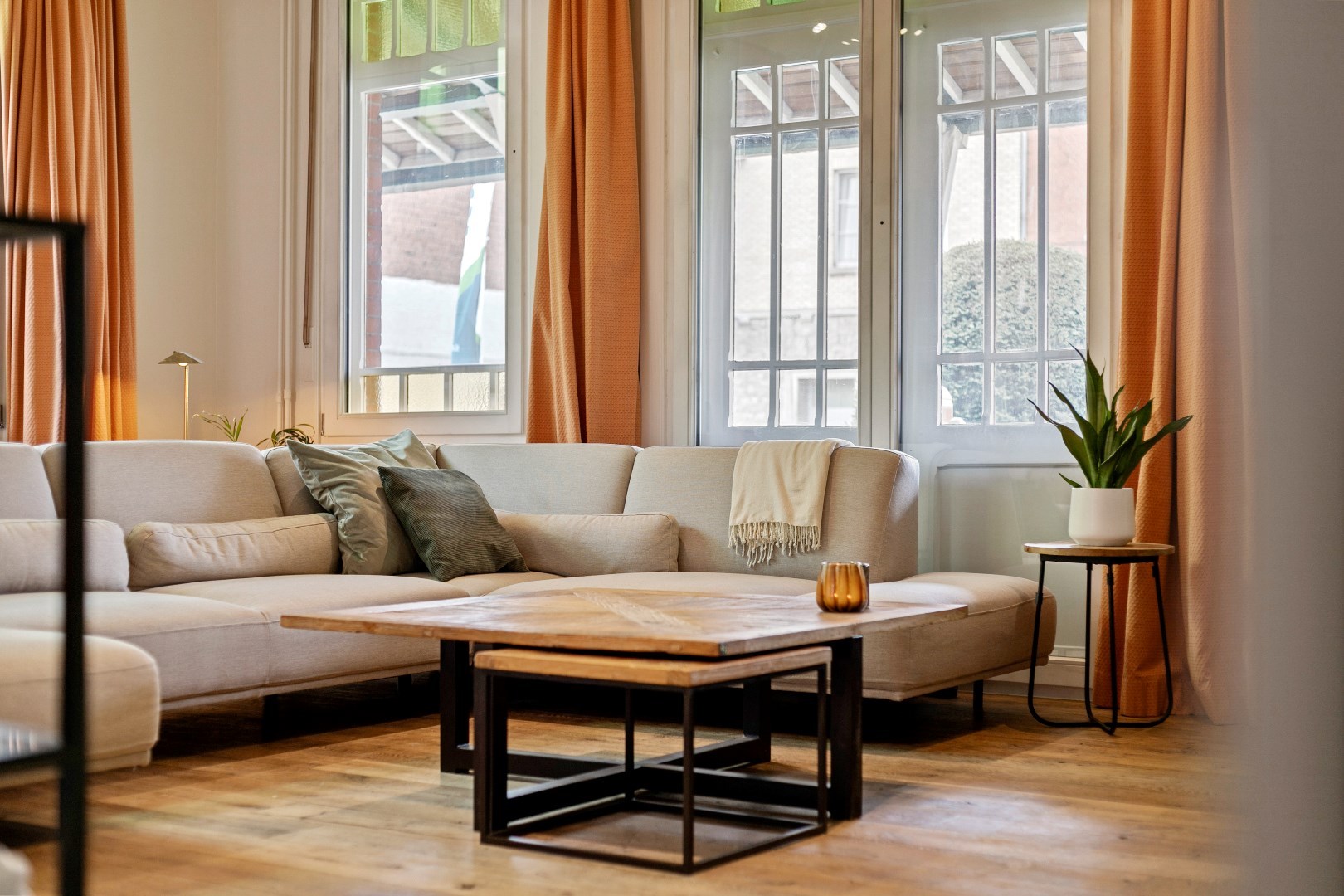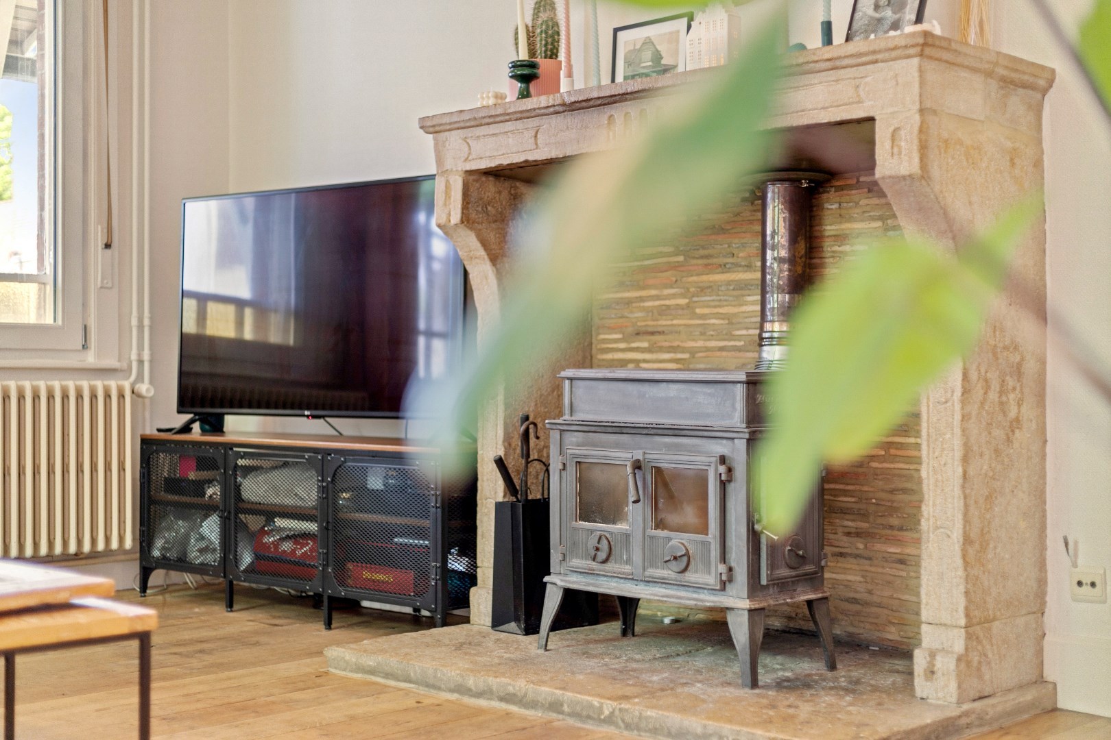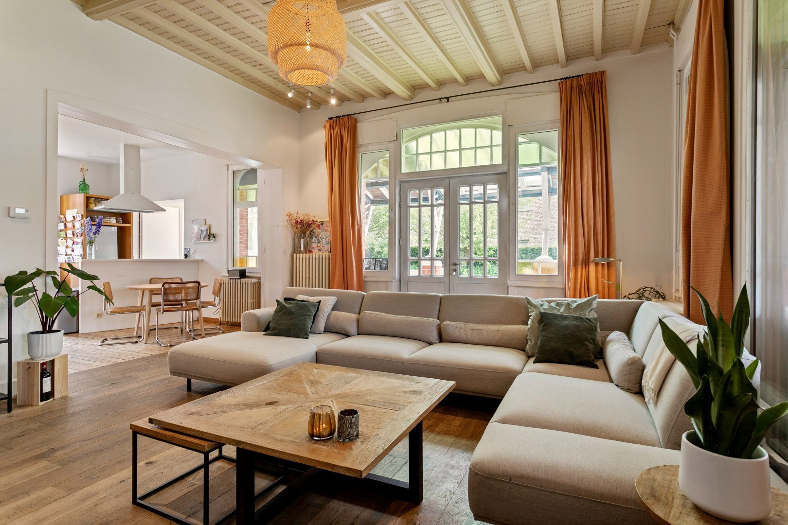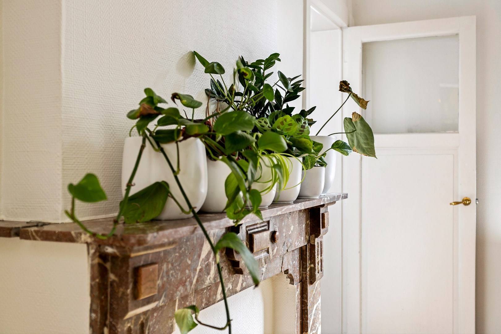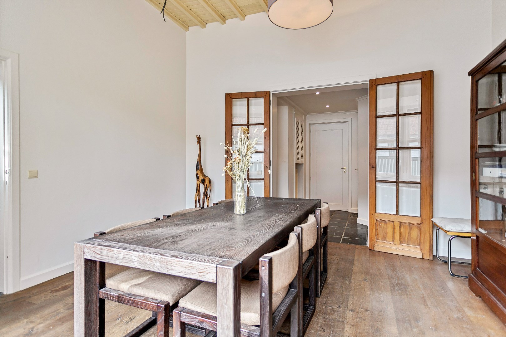 Door de mooie voortuin, onder de kenmerkende mozaïek en via het bordes stappen we verwachtingsvol naar de voordeur. Deze leidt ons naar de inkomhal met gastentoilet en vestiaire. Langs de voorzijde bevindt zich een adembenemend salon met hoge plafonds. De vele raampartijen zorgen voor een overvloed aan daglicht en gunnen ons een blik op het leven dat zich buiten afspeelt. De gezelligheid van de knapperende houtkachel doet ons dagdromen. De zitruimte gaat over in het eetgedeelte en de open keuken. Door het raam aan de achterzijde kijken we uit over de binnenkoer in ‘kinderkopkes’ en de schuur achteraan. Een prachtige kamer achteraan met authentieke dubbele, houten deur kan plaats bieden aan een buro, bibliotheek of ontspanningsruimte.