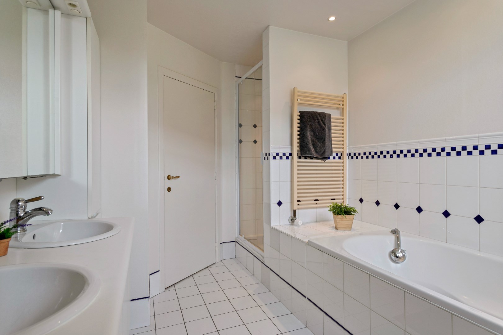 Op de eerste verdieping zijn er 3 ruime slaapkamers waarvan één met dressing. Verder is er nog een apart toilet en badkamer met bad, douche en dubbele lavabo.