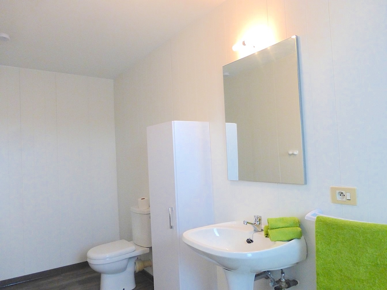 We komen binnen via de ruime garage. Hierachter is er een zeer grote berging met plaats voor wasmachine, droogkast,... alsook een apart toilet.