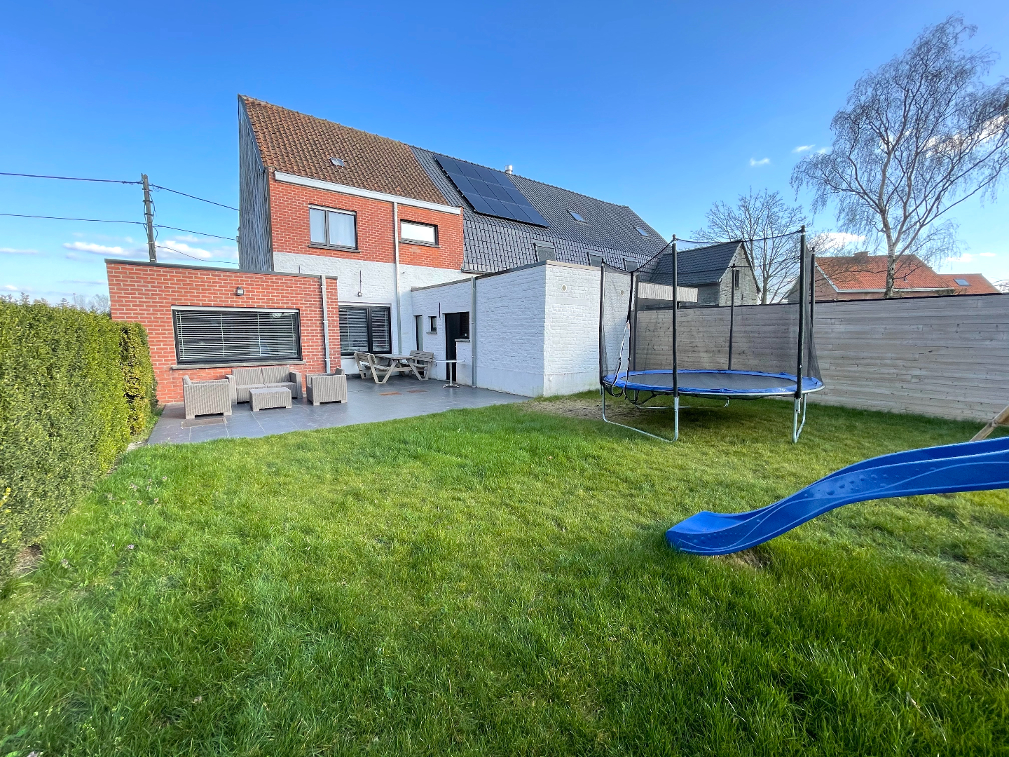 In de tuin is het zalig vertoeven! Vanop het terras hebben we nog toegang tot een berging waar ruim plaats is om tuinmateriaal op te bergen.