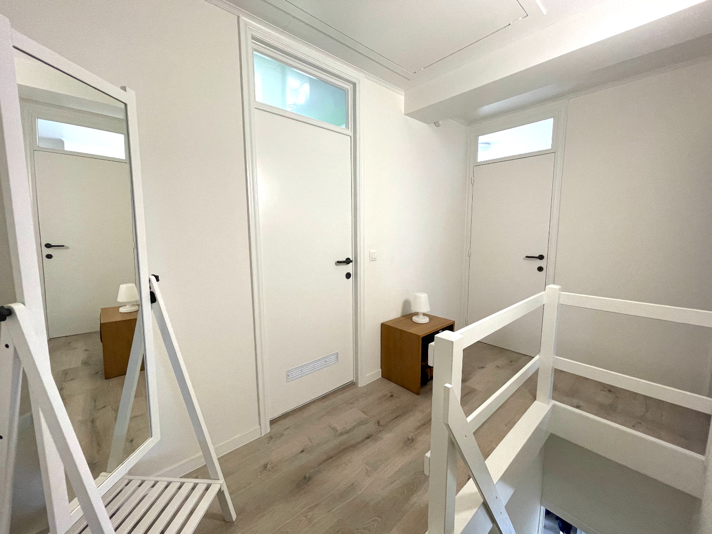 De eerste verdieping is uitgerust met laminaat en beschikt over 3 slaapkamers (met rolluiken) en de badkamer. De badkamer is voorzien van een lavabomeubel, toilet en bad met douchewand.