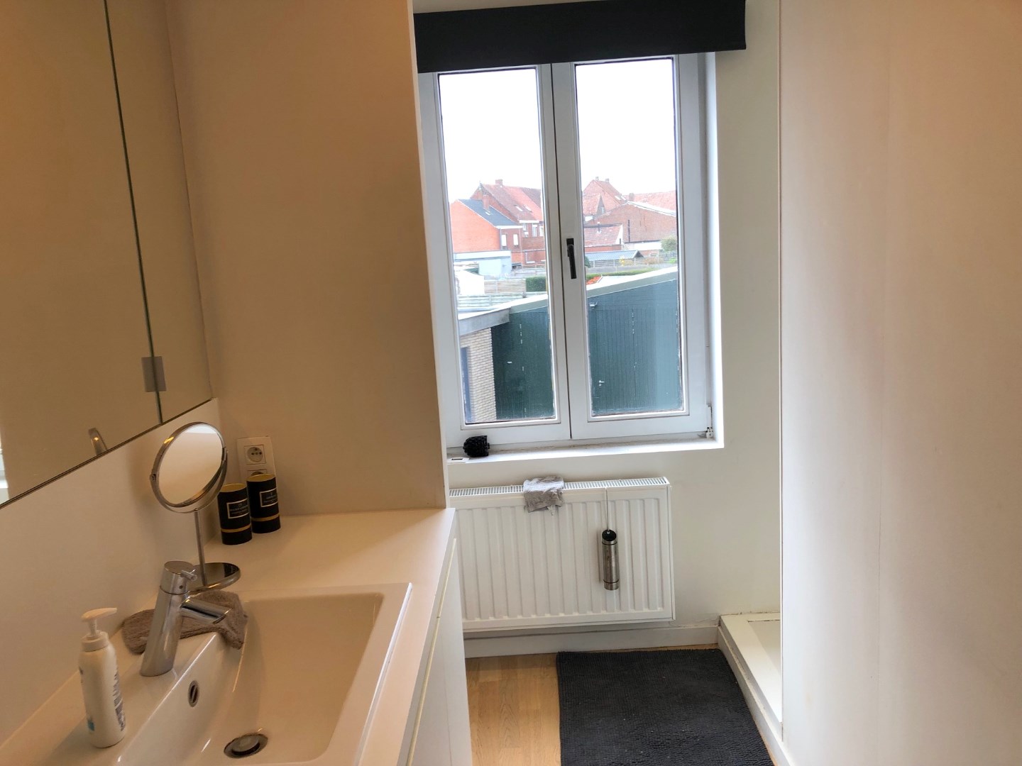 De eerste verdieping beschikt over een grote slaapkamer, een kleinere kamer en badkamer met lavabomeubel, inloopdouche en toilet.