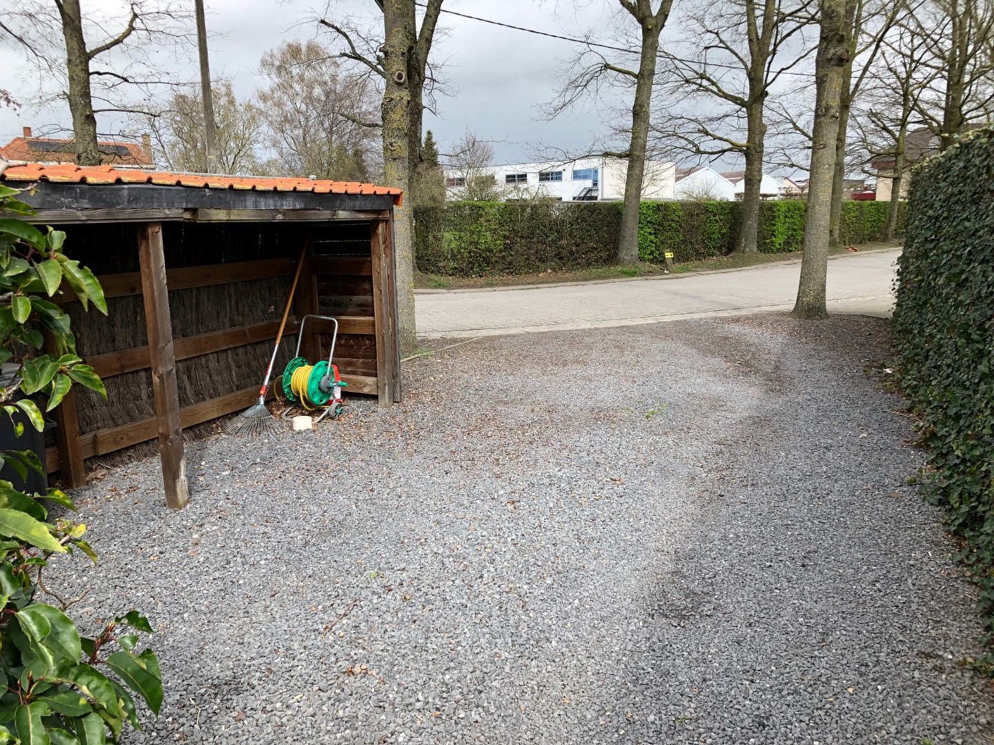 Via het grote schuifraam achteraan kunnen we op het grote terras met aansluitend de private parkeerplaats. Het mooie zicht op de groene dreef achteraan is een mooi extraatje...