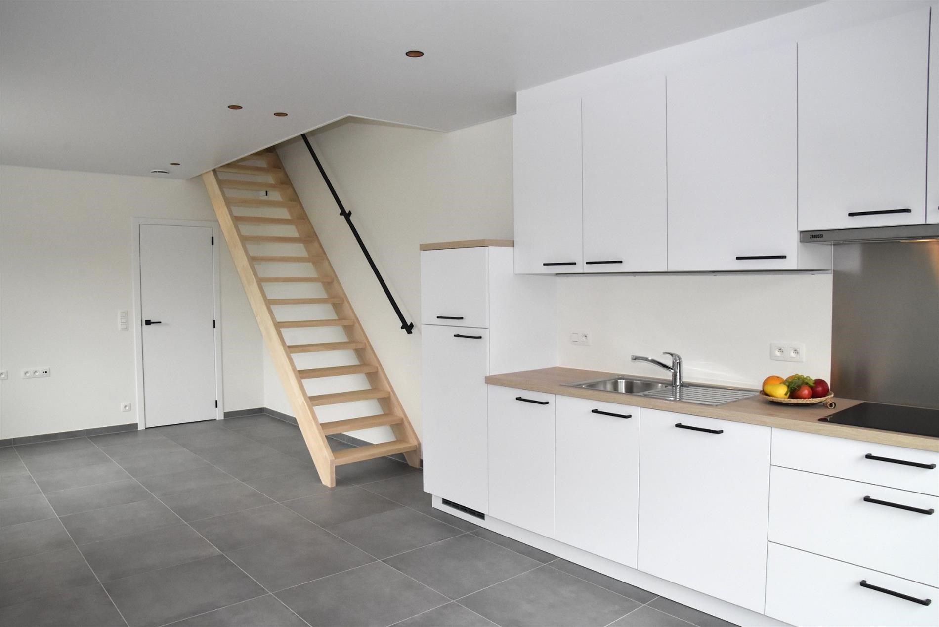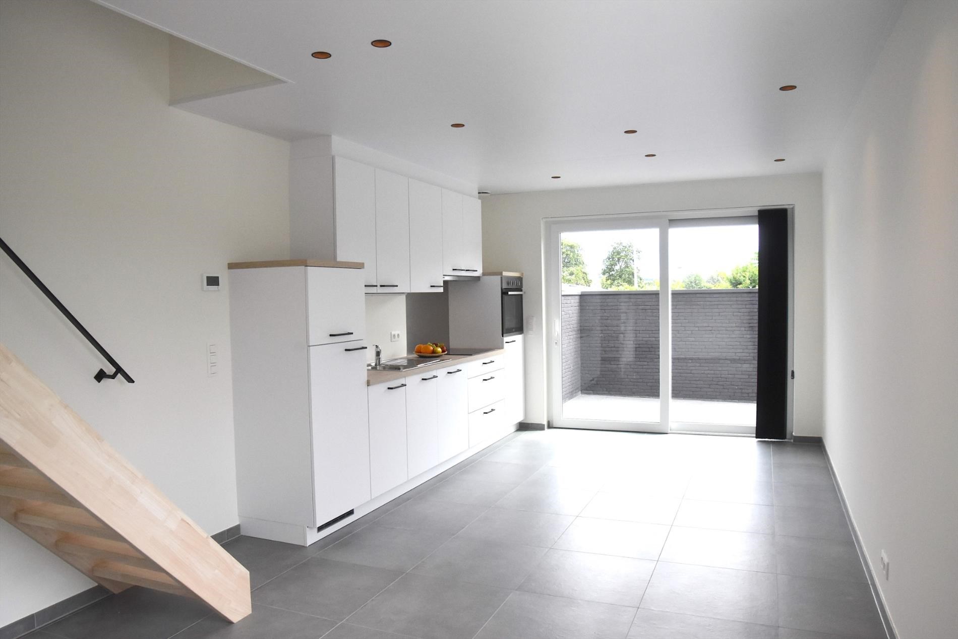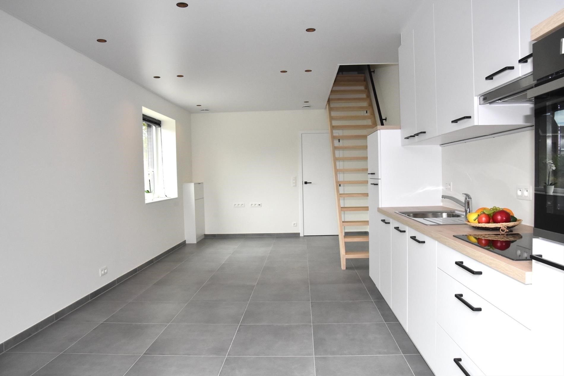 De leefruimte met open keuken is heel lichtrijk. De vele ramen zorgen ervoor dat u de volledige dag in het zonlicht baadt. Het grote schuifraam naar de koer geeft u het gevoel dat u buiten leeft. De keuken is volledig voorzien van alle toestellen.