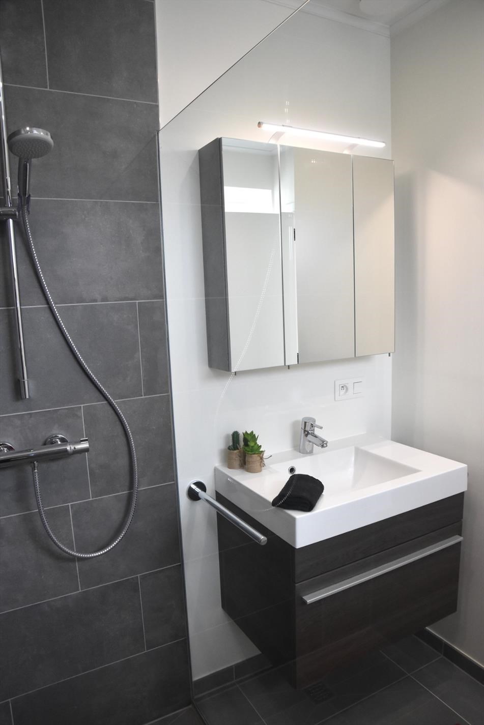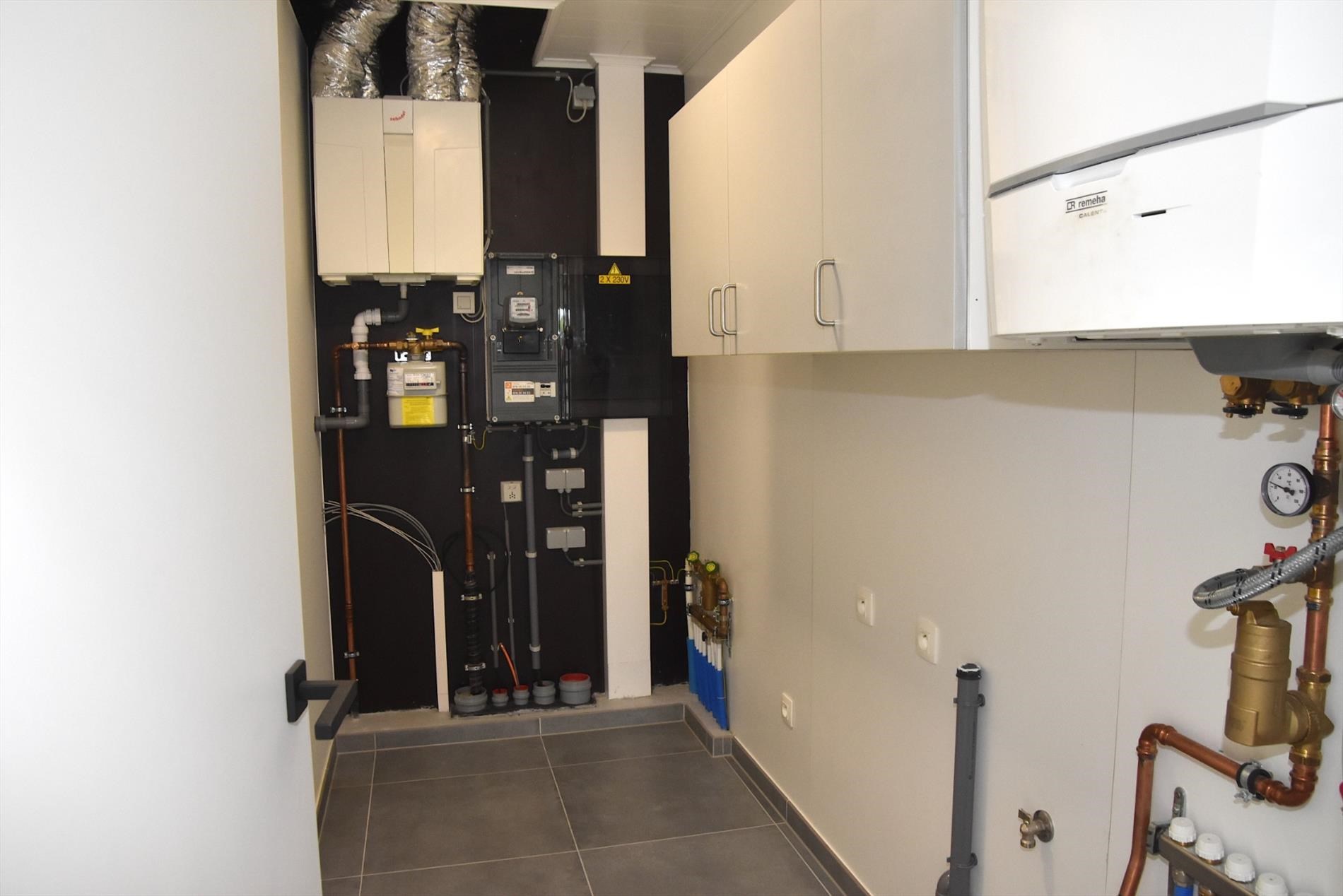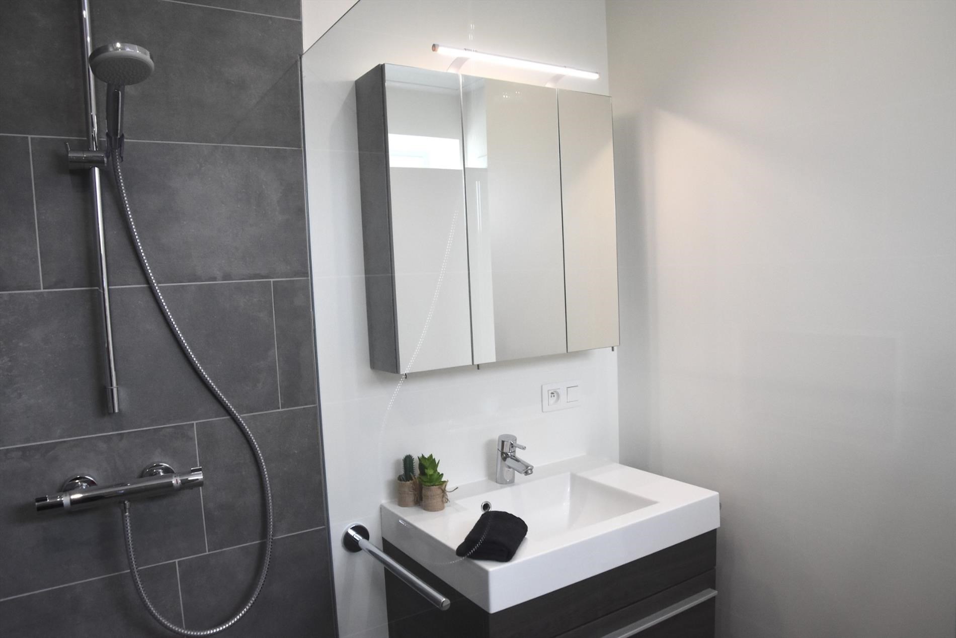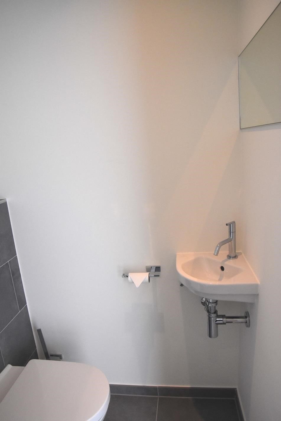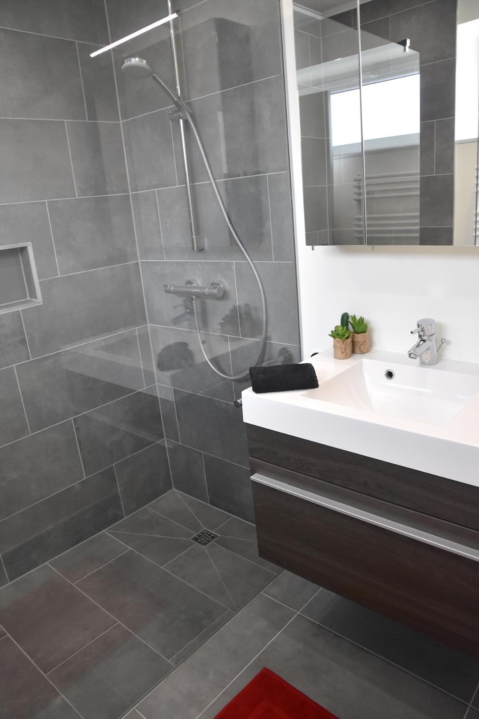 Op de gelijkvloerse verdieping is er verder een uiterst praktische berging met ruimte voor wasmachine en droogkast. Het aparte toilet beschikt over een handwasbakje. De badkamer is werkelijk subliem. De mooie inloopdouche met glazen wand en het lavabomeubel zijn schitterend.