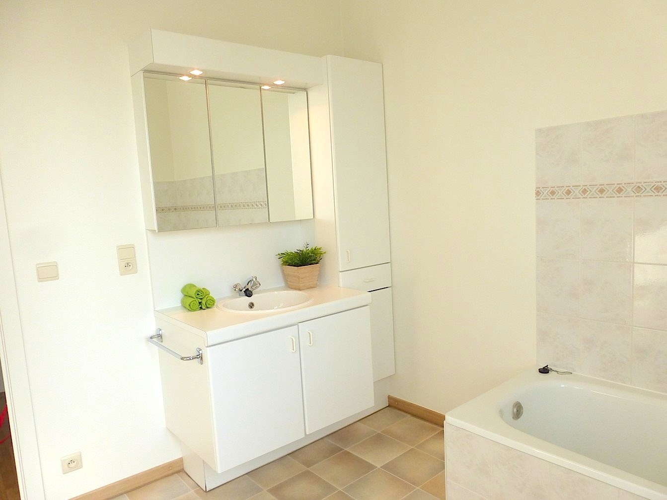 De eerste verdieping beschikt over 3 slaapkamers en een badkamer. Deze is voorzien van een lavabomeubel, bad en toilet.