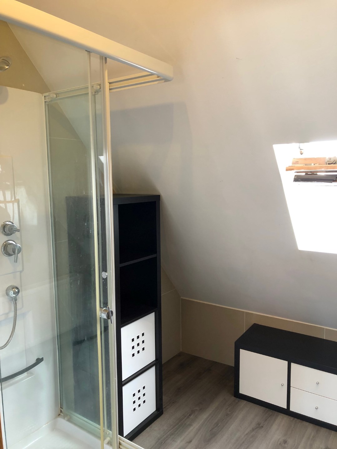 De eerste verdieping beschikt over een slaapkamer en een badkamer met douche en lavabo.