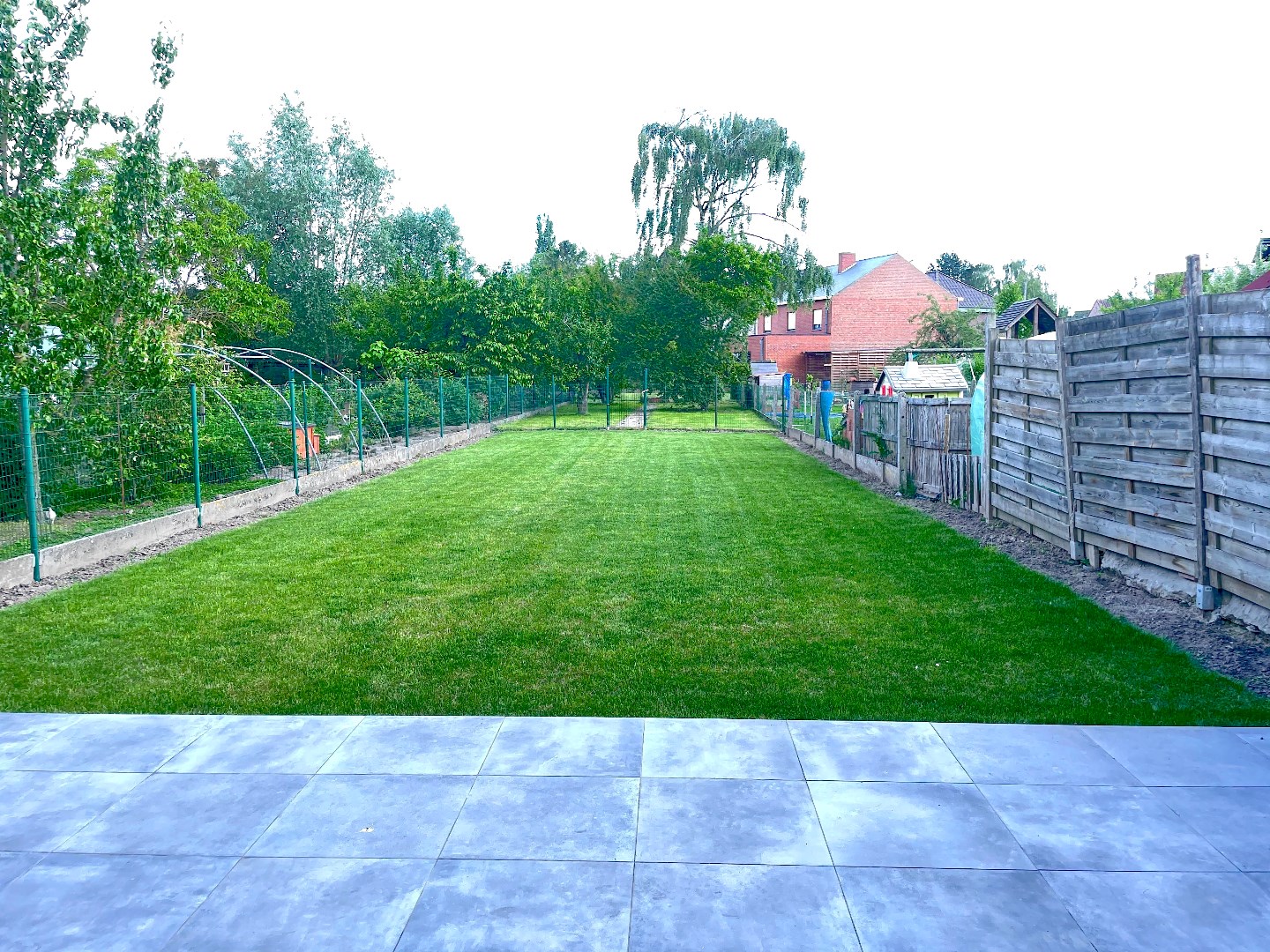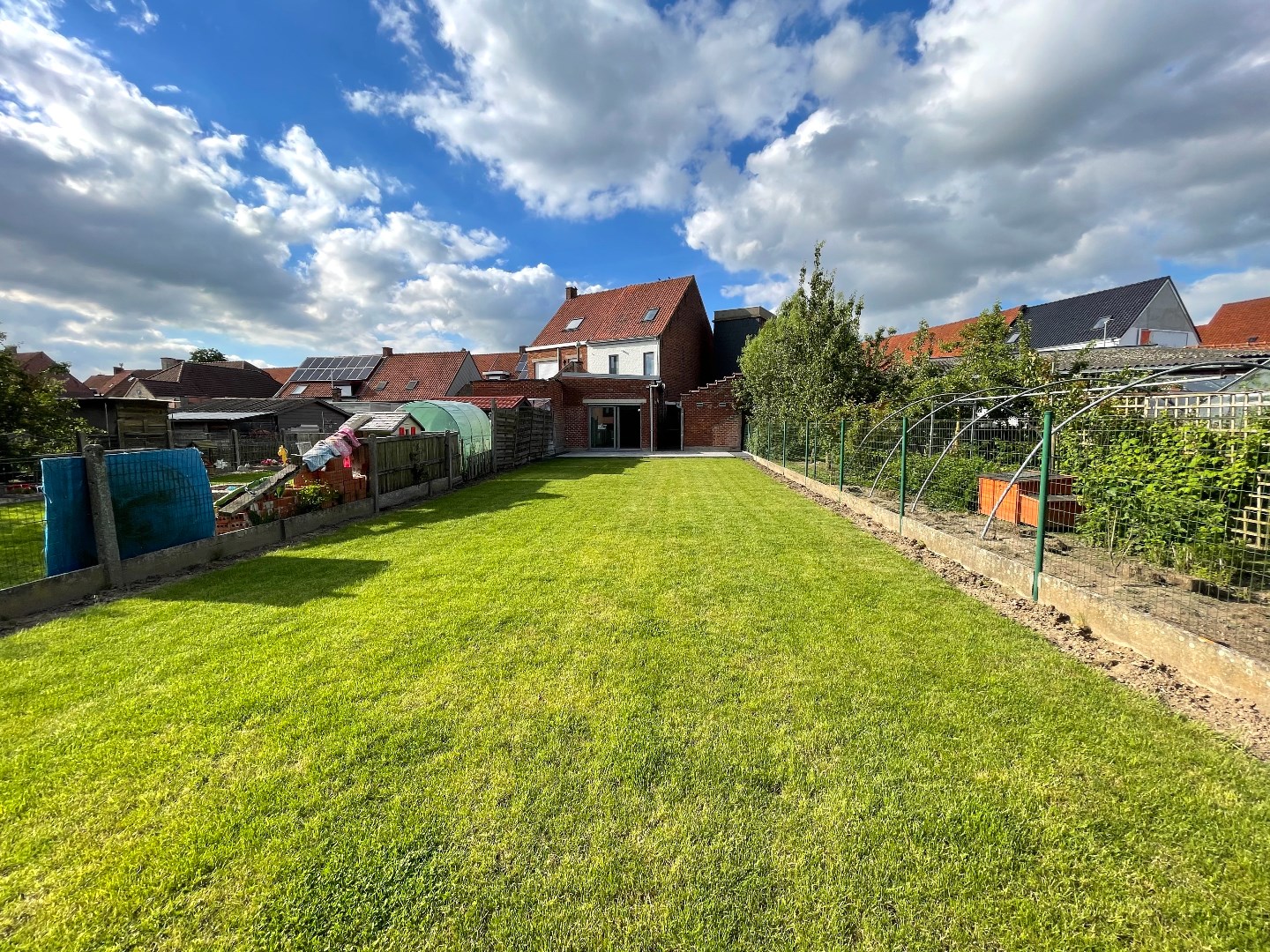 Het terras met de grote zuidgerichte tuin is prachtig. Achteraan de tuin is er een boomgaardje waar bijvoorbeeld ook diertjes kunnen gehouden worden.