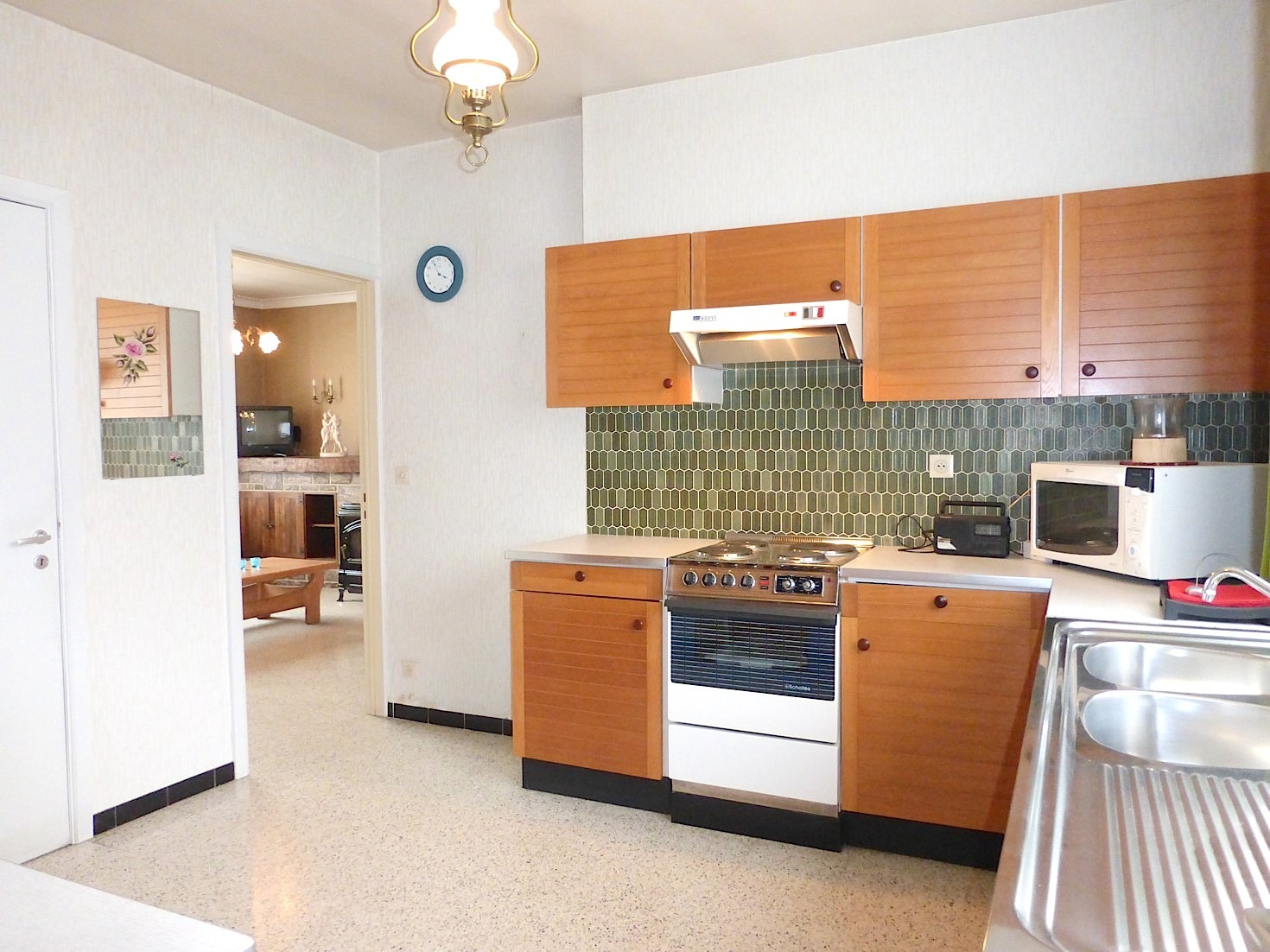 De verzorgde inkomhal met apart toilet nodigt ons uit via ofwel rechtstreeks naar de keuken naar de lichtrijke leefruimte de woning te betreden. Via de grote keuken, komen we in de bijkeuken, die toegang heeft tot de garage en tot de tuin.