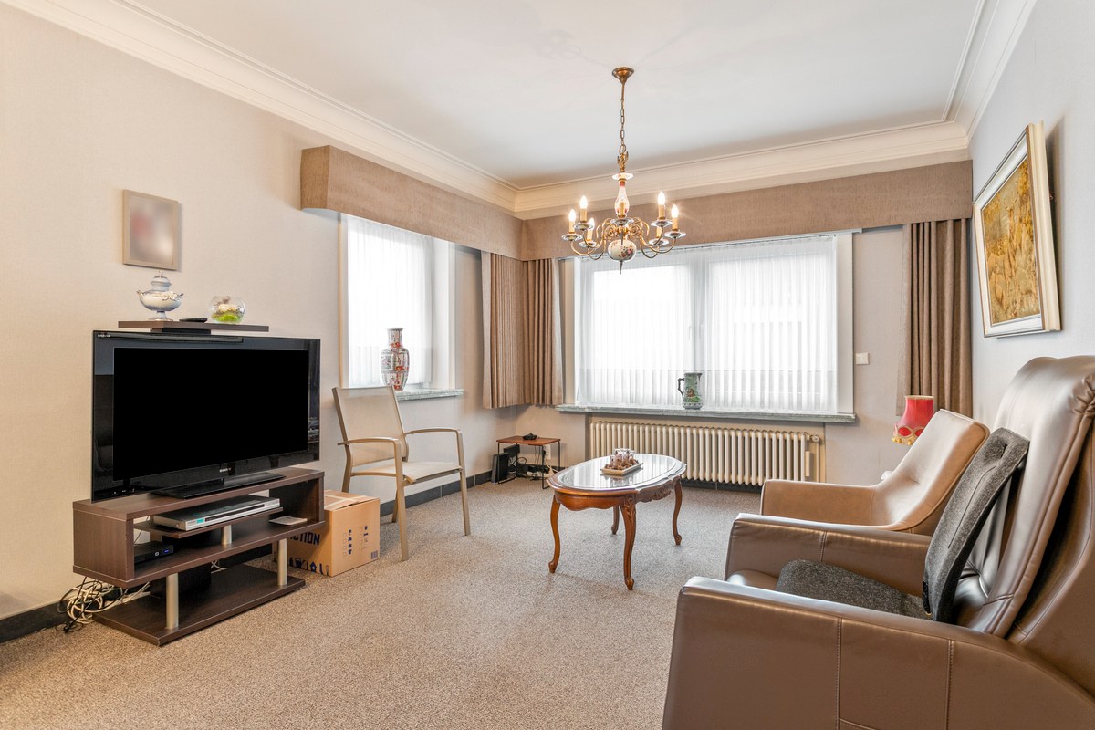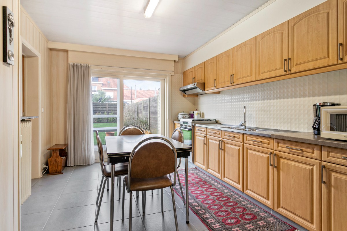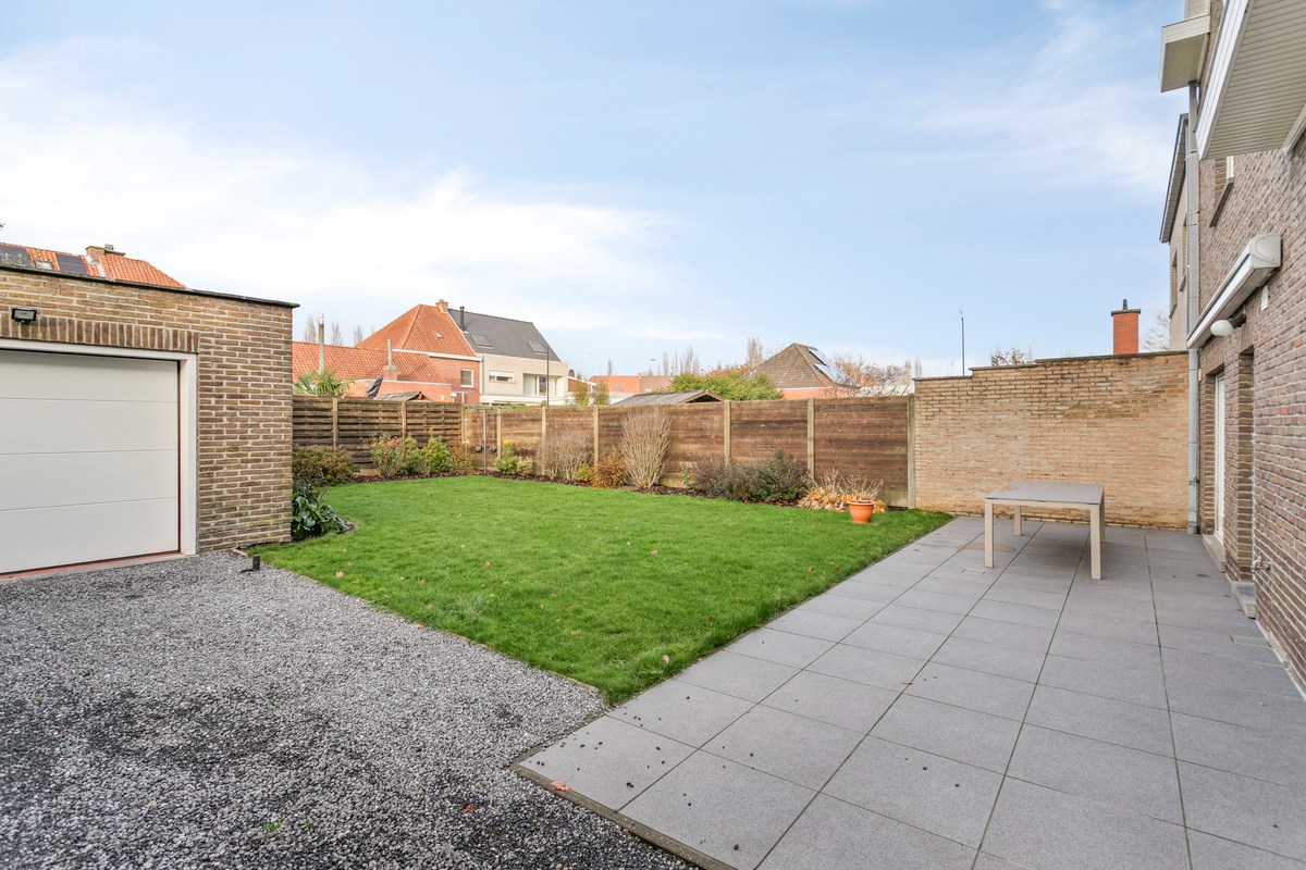 Achter de woning ligt een westgeöriëntieerde tuin met een recent vernieuwd terras, alsook een praktische garage met nieuwe garagepoort.