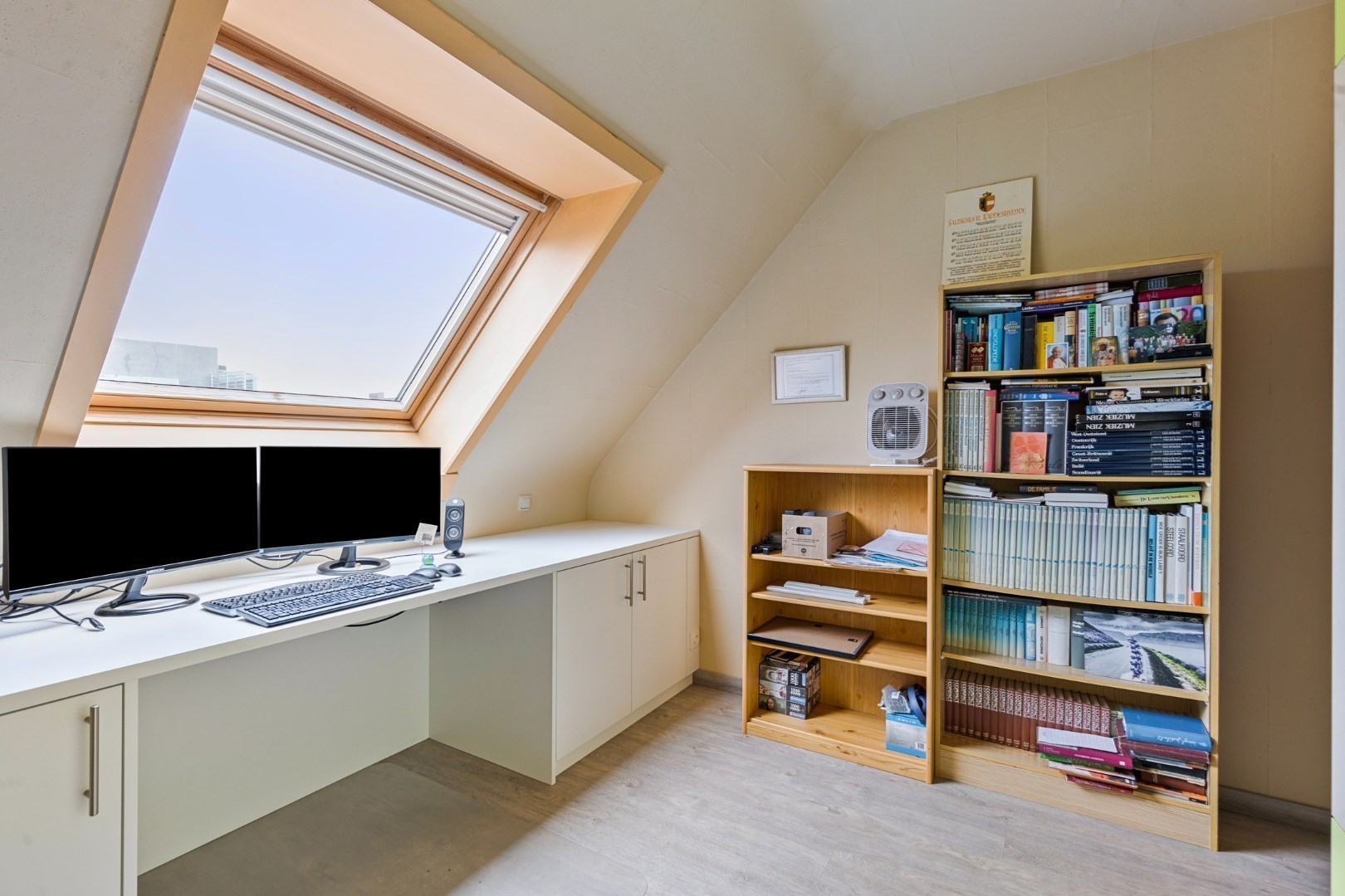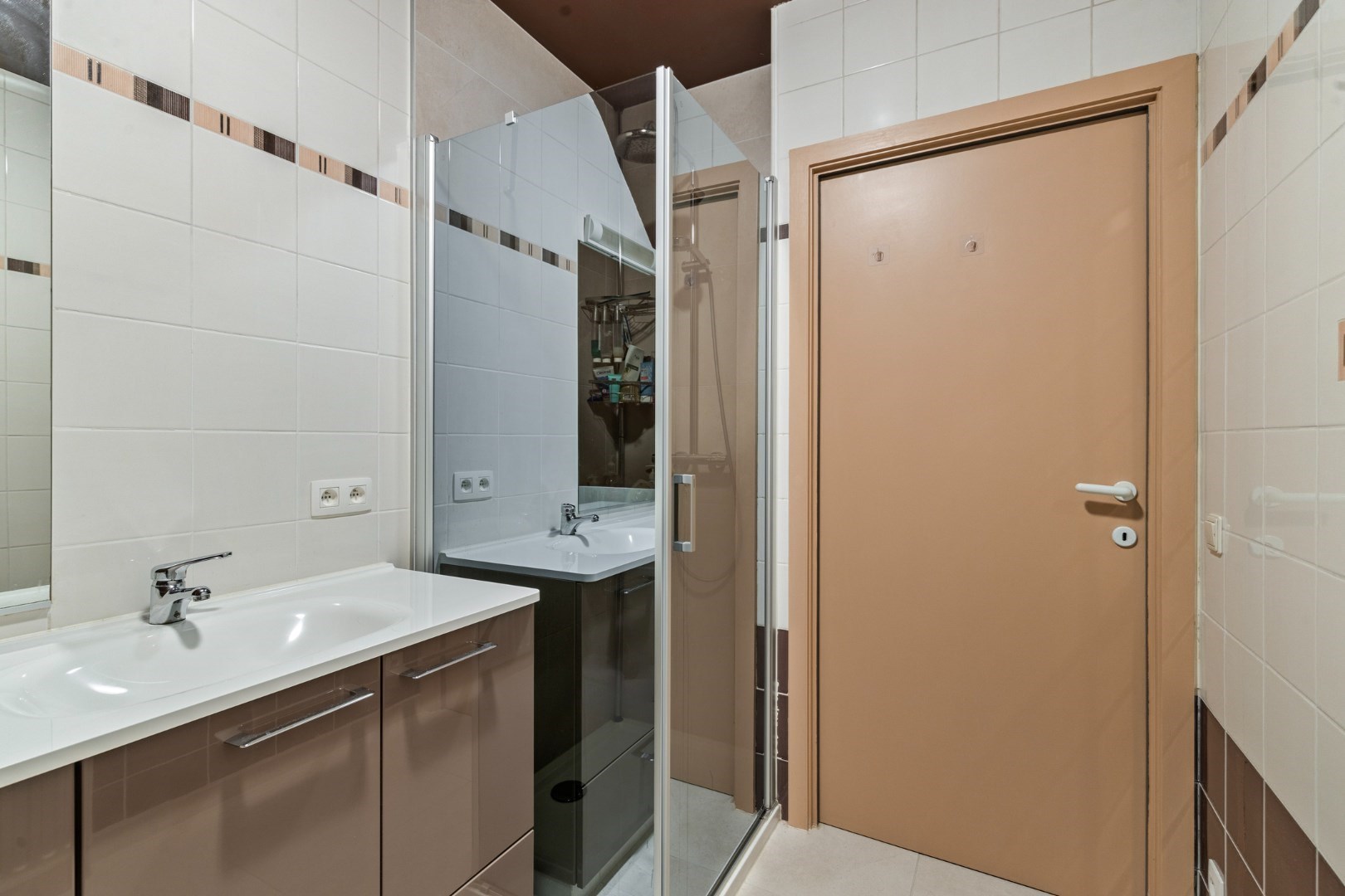 Er zijn verder 2 mooie slaapkamers. De ene kamer is ingericht met een vast bureau en kasten en de andere kamer beschikt ook over een vaste kastenwand. De badkamer werd een 5-tal jaar geleden vernieuwd en heeft een lavabo, bad én mooie douche.