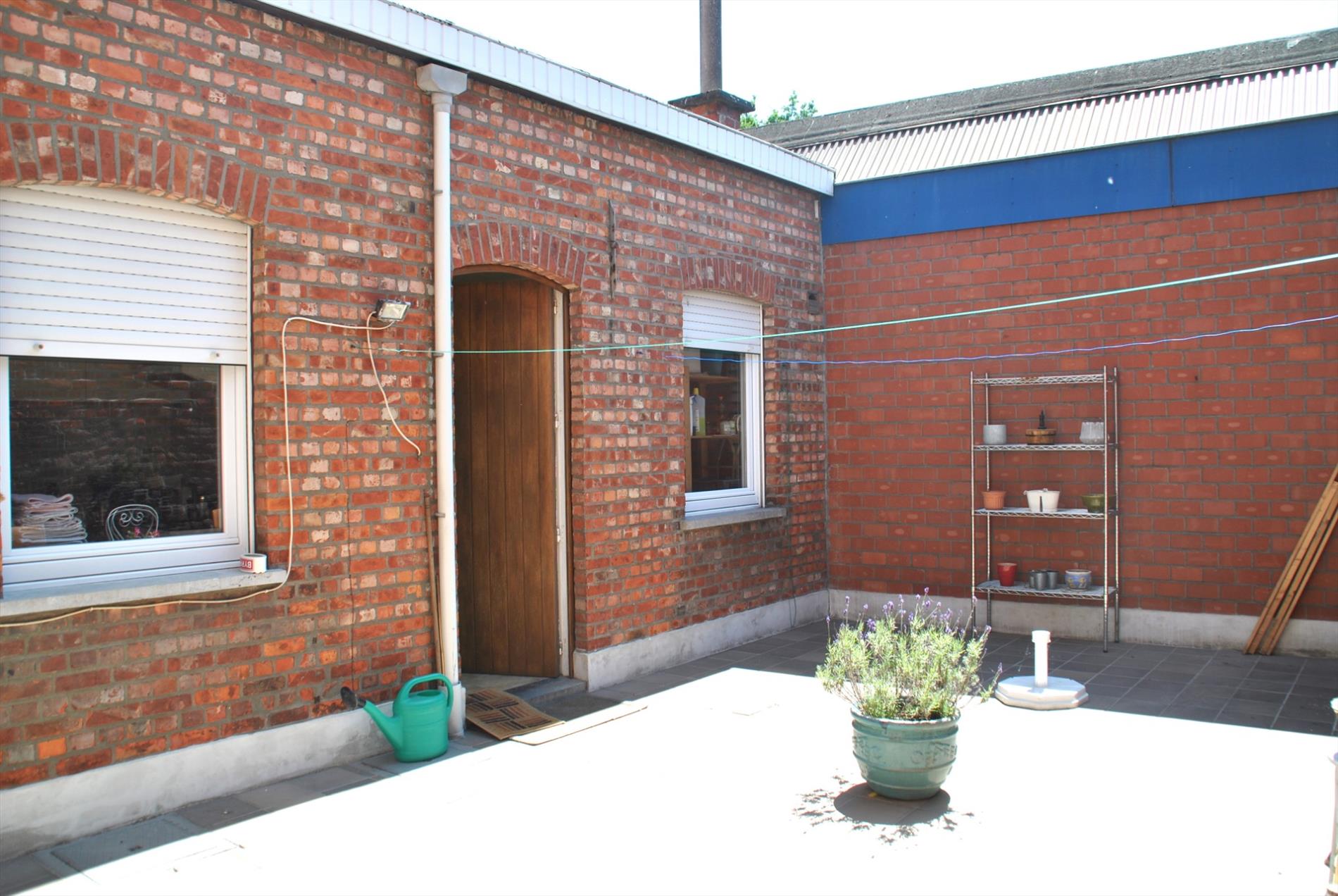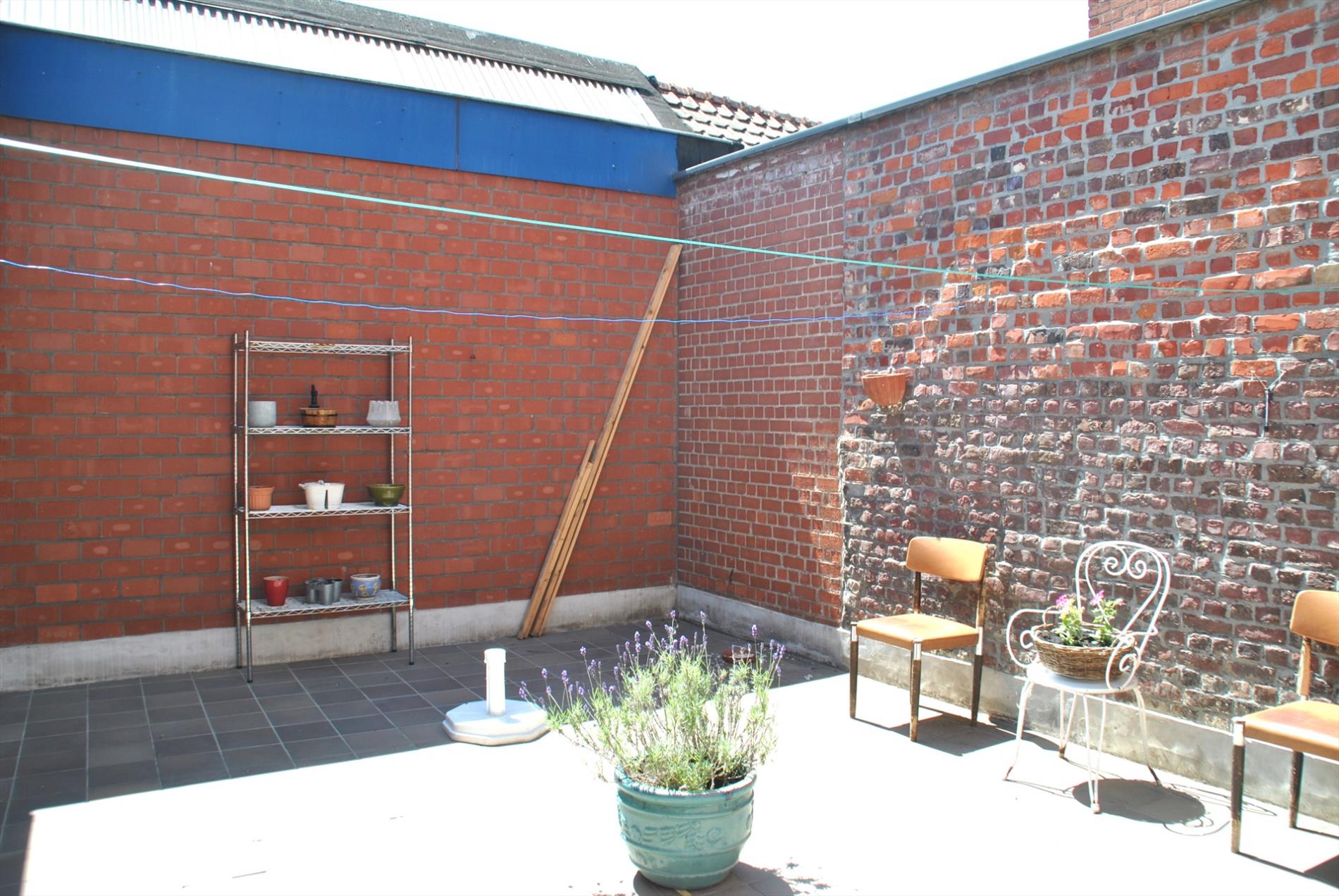 De kleine stadskoer/-tuin kan heel gezellig worden ingericht. Via een 2e deur langs de voorgevel komen we in een doorgang, waardoor we meteen naar de koer achteraan kunnen. Deze doorgang is eveneens heel handig voor het plaatsen van fietsen, ….