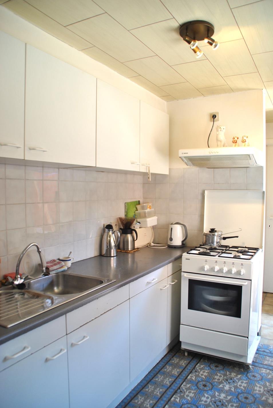 Achteraan palend aan de leefruimte is er een ‘basic’ keuken met achtergelegen bergruimte en toilet.