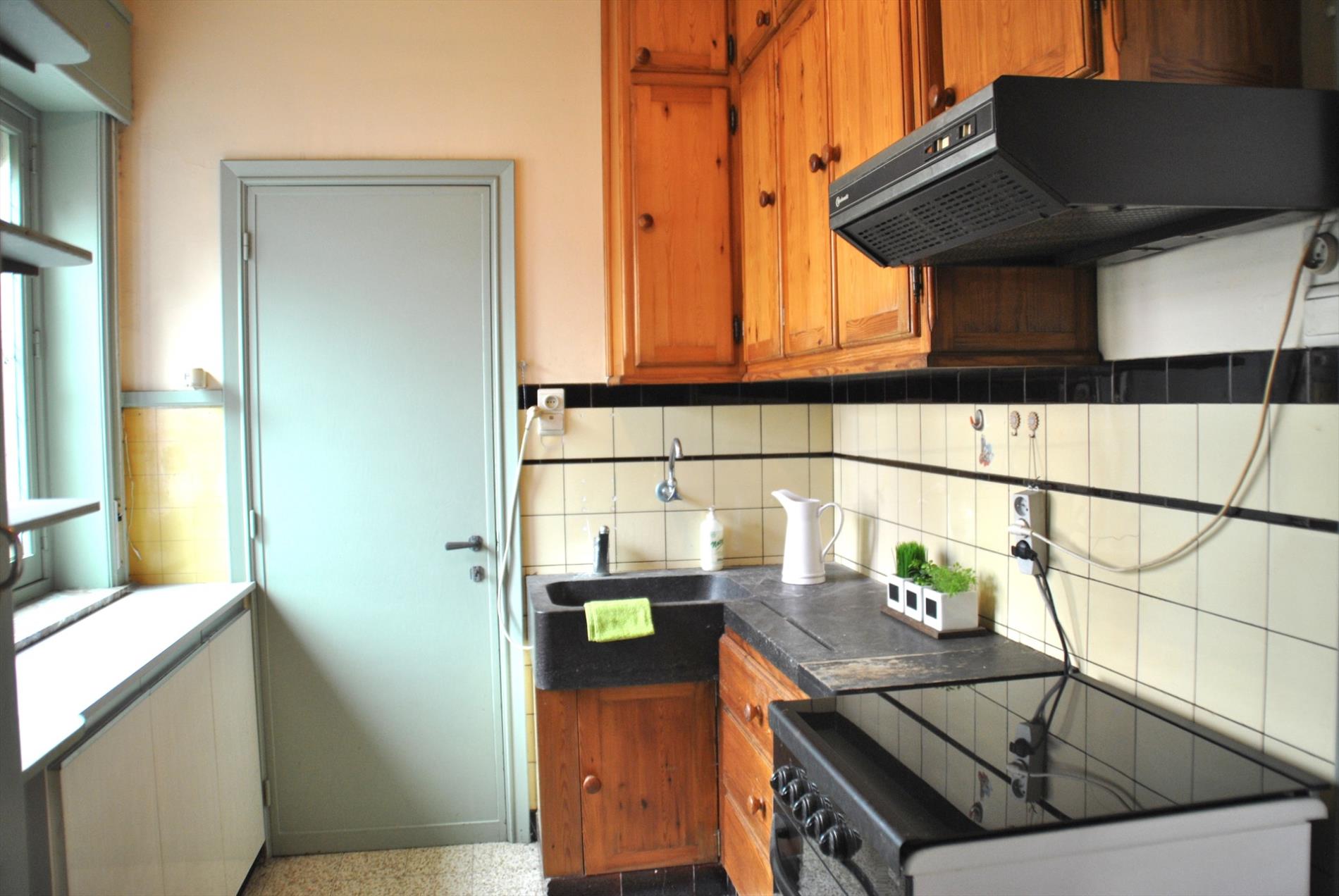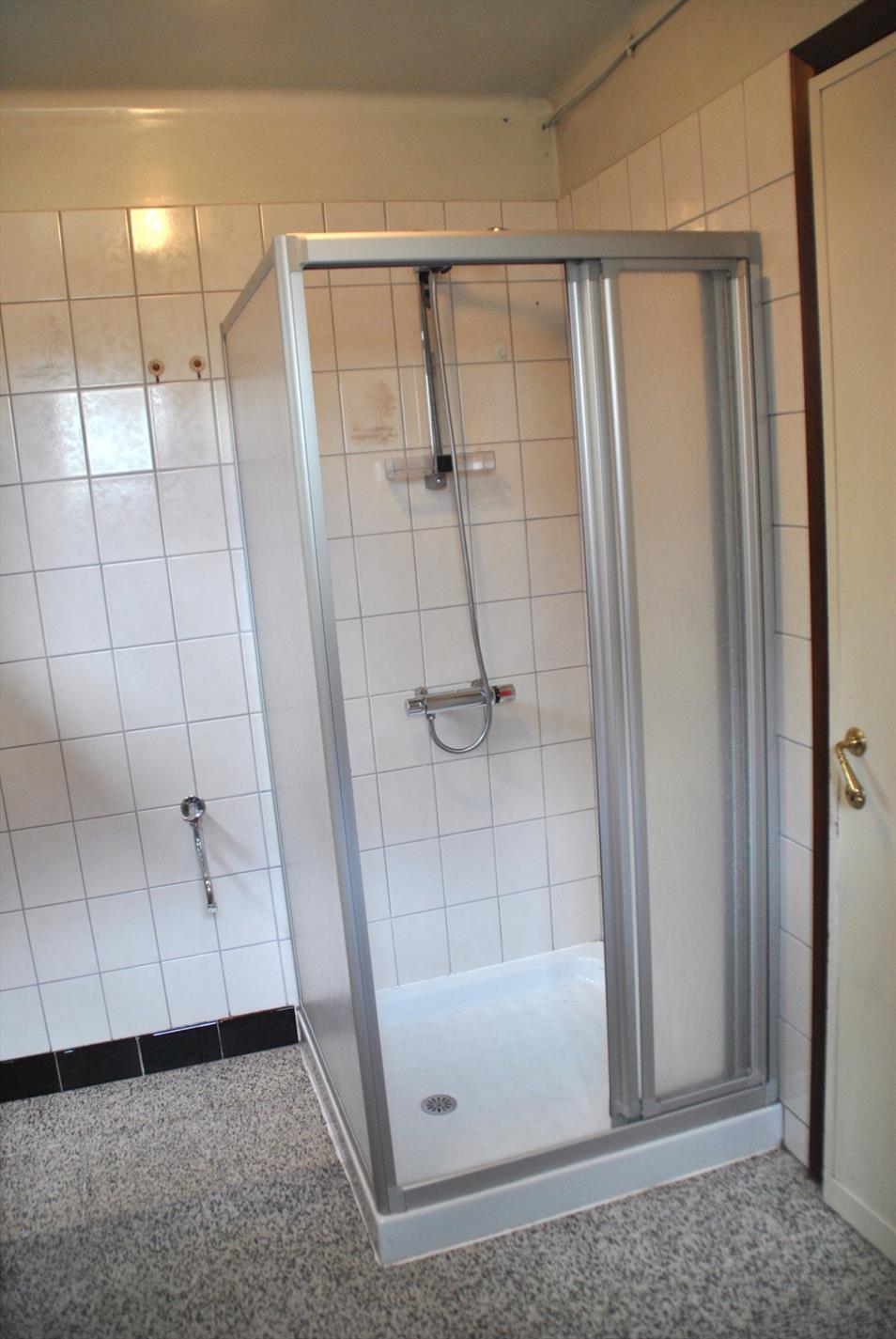 In hartje Geluwe vinden we deze charmante eigendom terug. De gevel straalt eigenheid uit. Vanuit de mooie inkomhal hebben we toegang tot de leefruimte en de bovenverdieping. De living is ruim en lichtrijk en bevat authentieke elementen. De aanpalende keuken is nog in oorspronkelijke staat. Achteraan is er een soort ‘veranda’ die perfect zou kunnen dienstdoen als uitbreiding van de keuken of woonplaats. Aansluitend is er een badkamer met lavabo, toilet en douche.