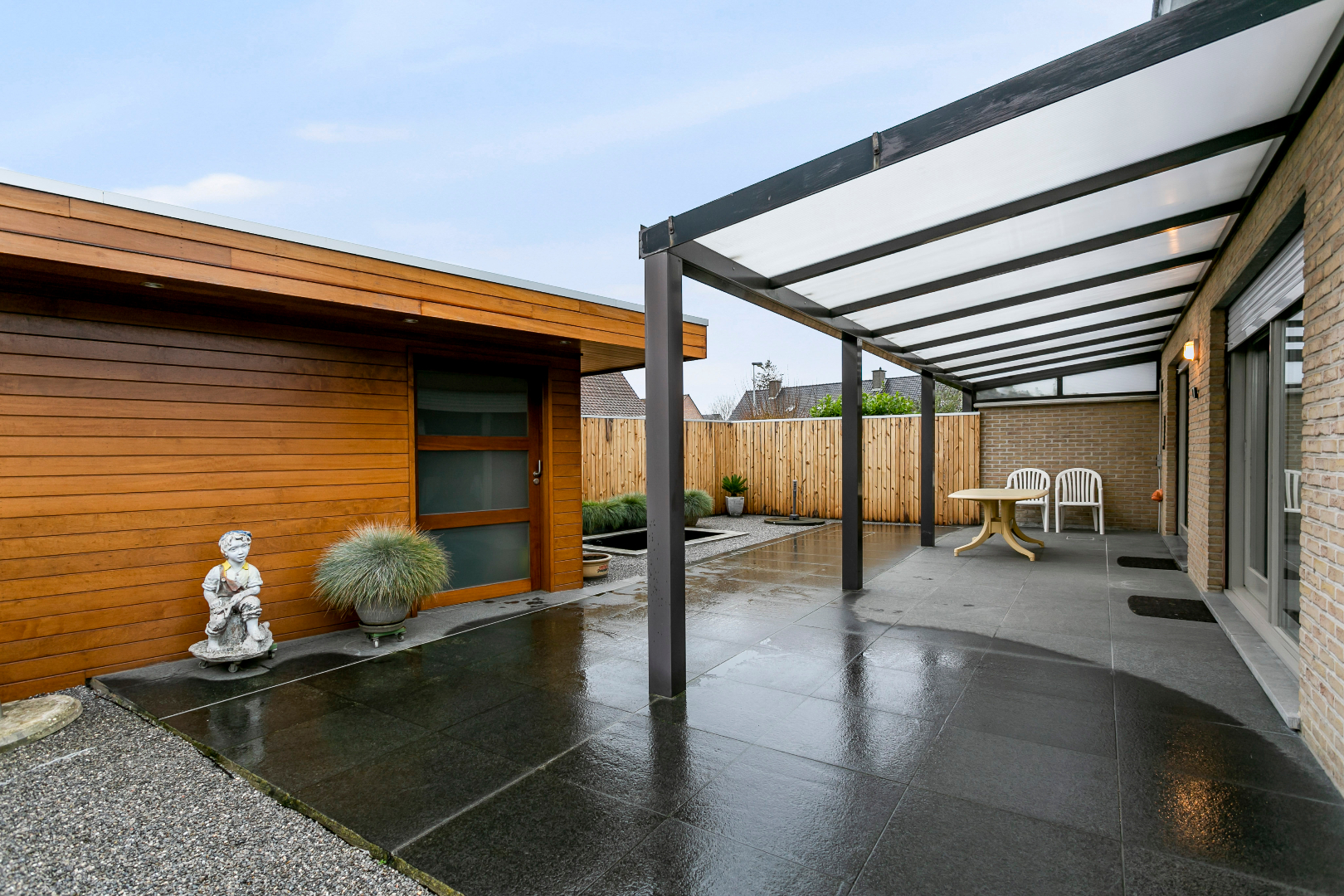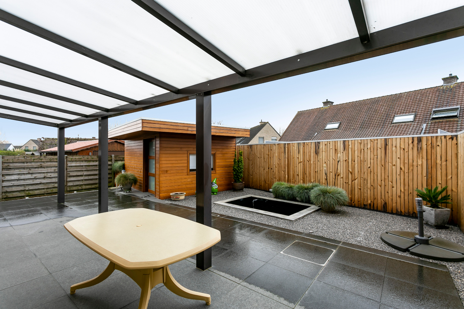 Zonnepanelen en regenput aanwezig.