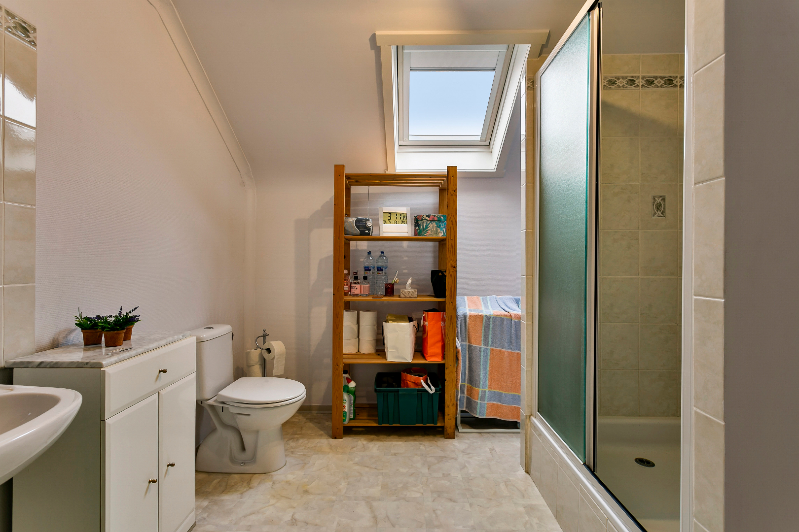 De verdieping is voorzien van 3 slaapkamers en een badkamer met lavabomeubel, toilet en douche.