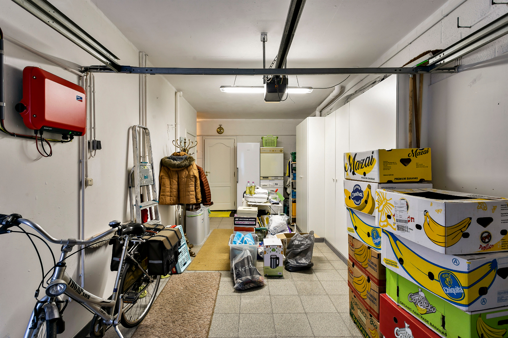 De garage is voorzien van een elektrische poort en is zeer ruim. Hier is zeker plaats voor een wasmachine, droogkast,...