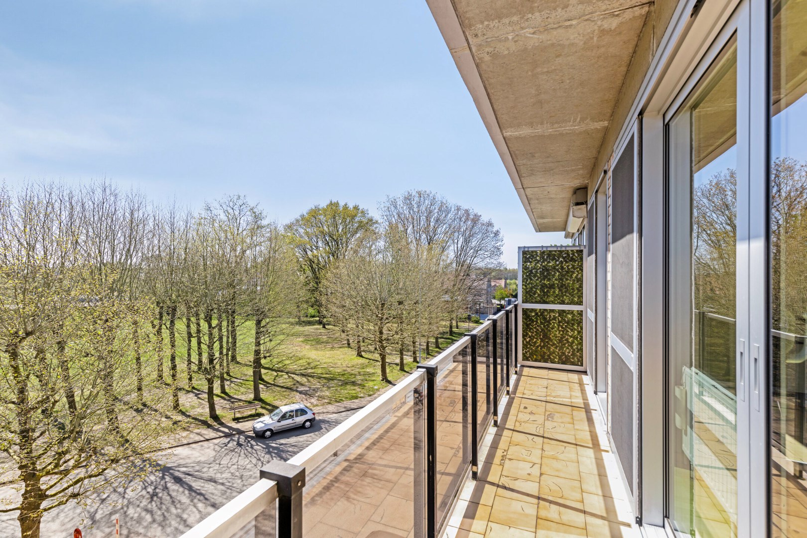In deze verzorgde residentie "De Gulle" nemen we de trap of de lift naar de 3e verdieping. We komen het appartement binnen in de hal met apart gastentoilet. De living beschikt over een zeer groot raam met toegang tot het terras en een schitterend zicht op het prachtige park voor de deur!
