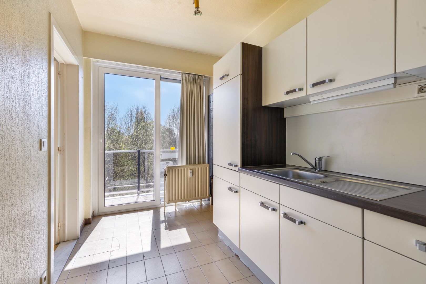 Mits wat renovatiewerken is hier een zalig, lichtrijk appartement van te maken met een schitterend zicht op groen en pal in het midden van het bruisende centrum van Gullegem.