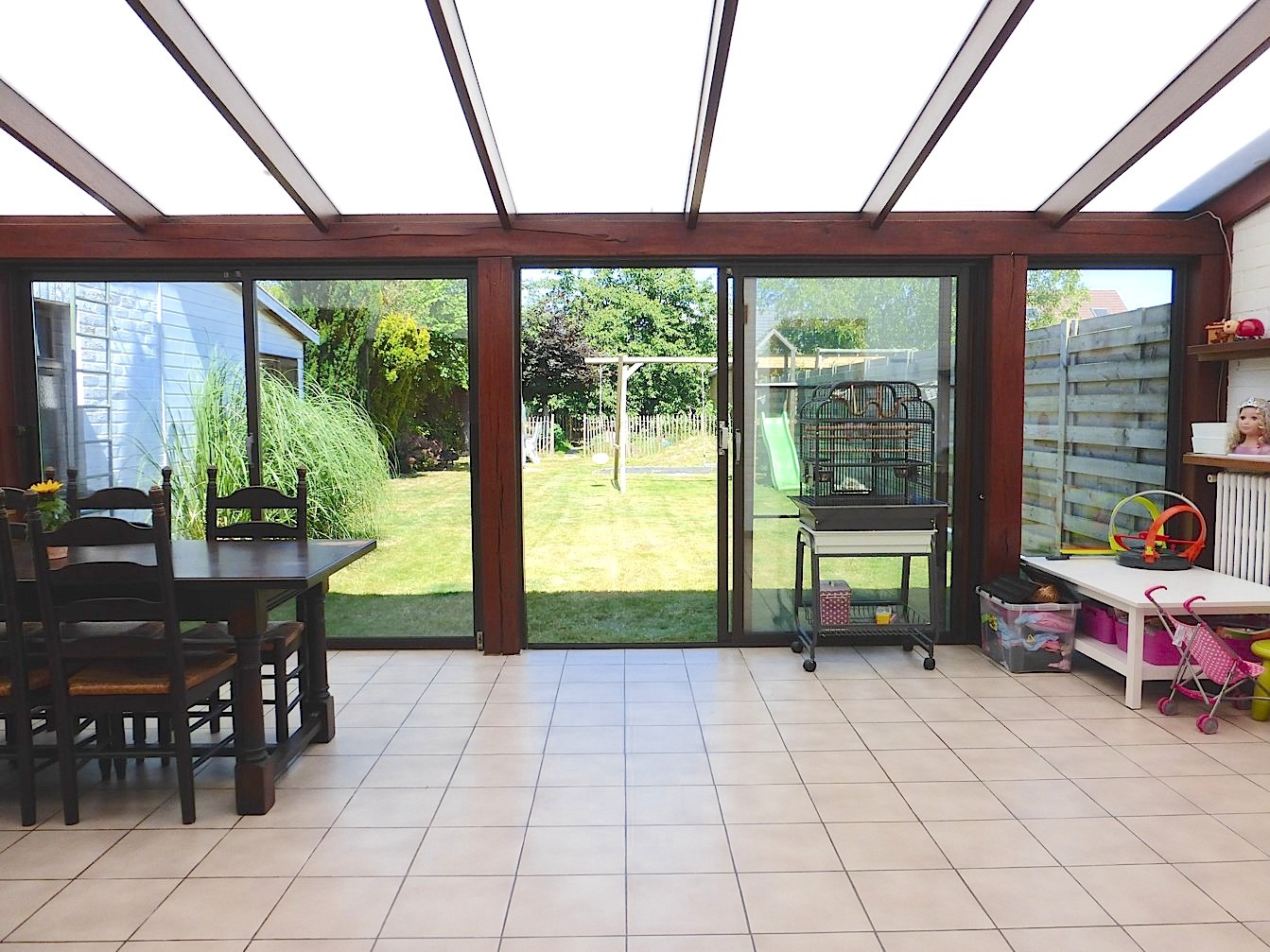Achter deze fraaie gevel schuilt een ruime woning met mooie volumes en veel mogelijkheden. We komen binnen en vinden vooraan een bureelruimte. Deze kan perfect dienst doen als hobbykamer of praktijkruimte. Via de hal komen we in de gezellige living met aansluitend de ingerichte keuken met veel kastruimte. Deze gaat over in een enorme veranda, van waaruit we naar de tuin kunnen. Deze is achteraan voorzien van een leuke moestuin, tuinhuisje en kippenren.