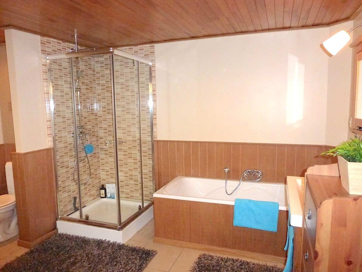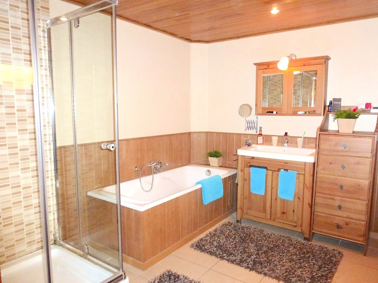 Ook de badkamer is zeer leuk ingericht, en voorzien van een lavabomeubel, ligbad, douche en toilet. Er is ruimte in overvloed, waardoor ook de wasmachine en droogkast een plaatsje hebben.