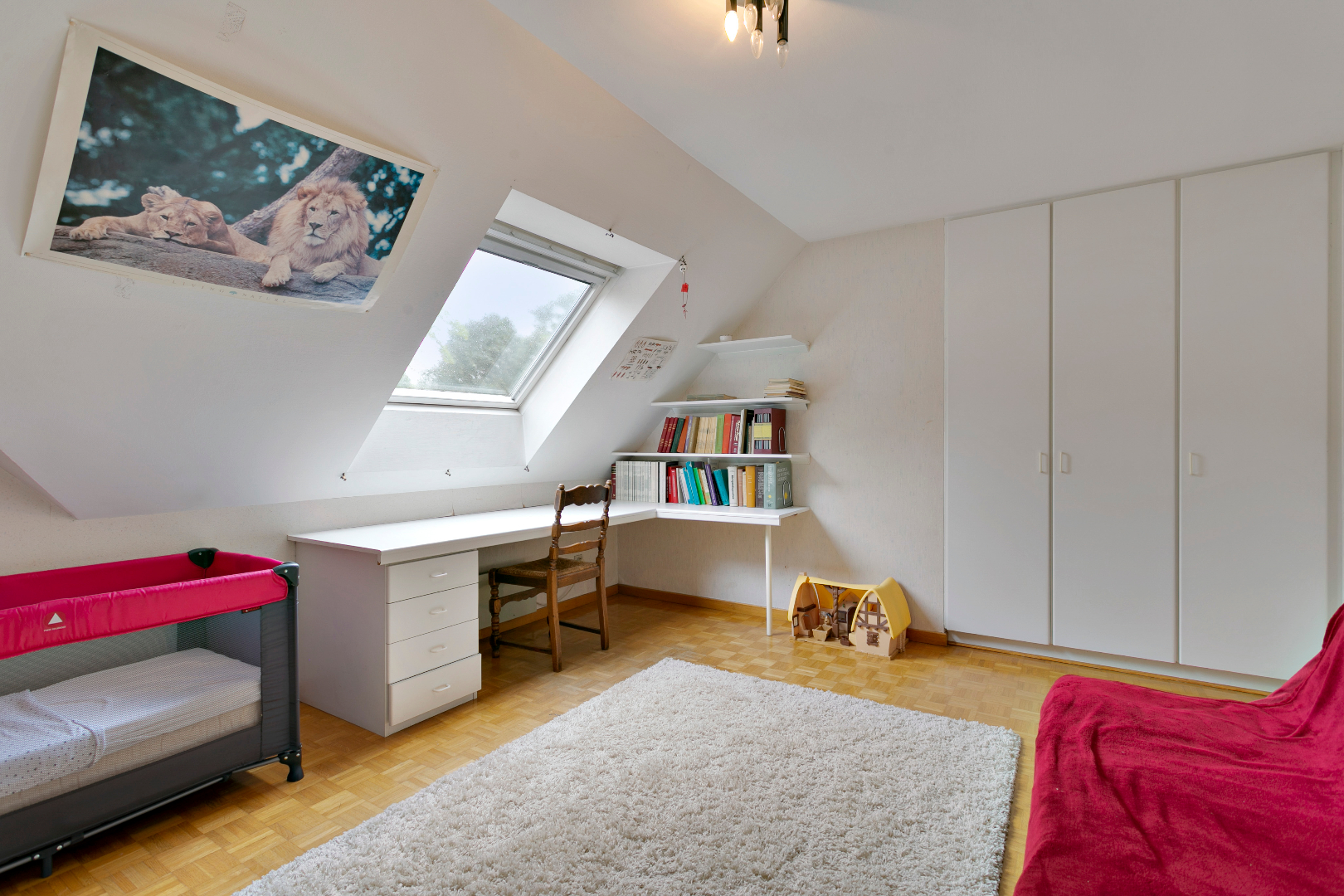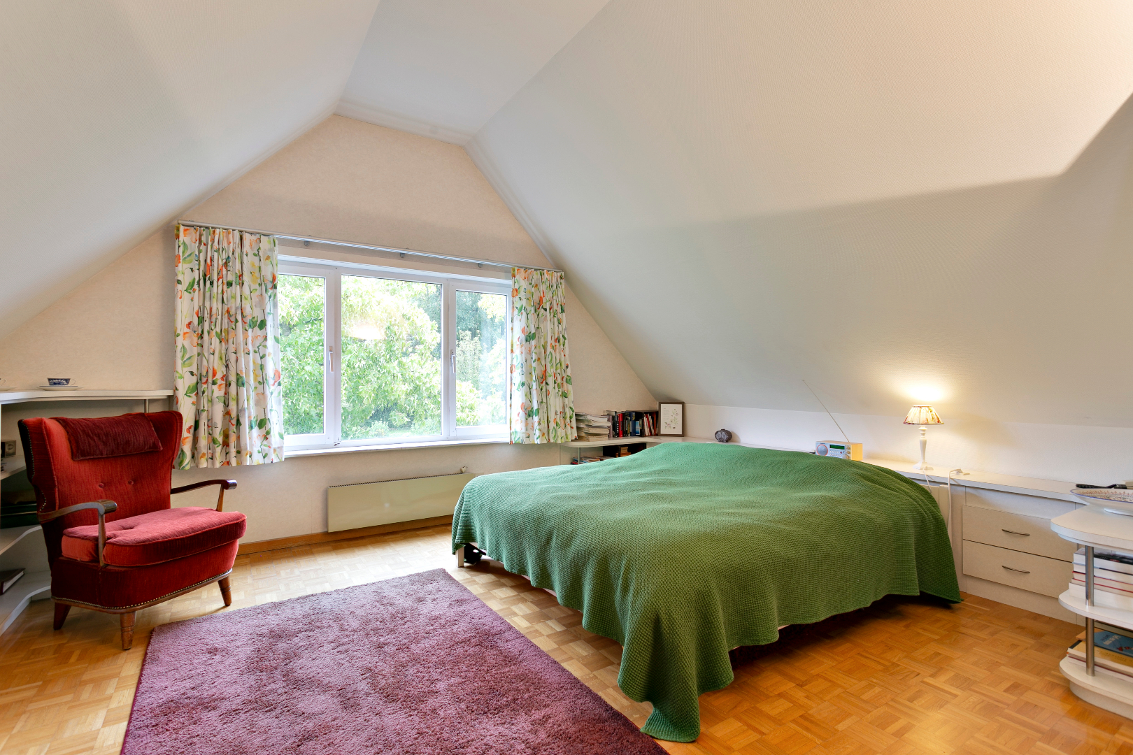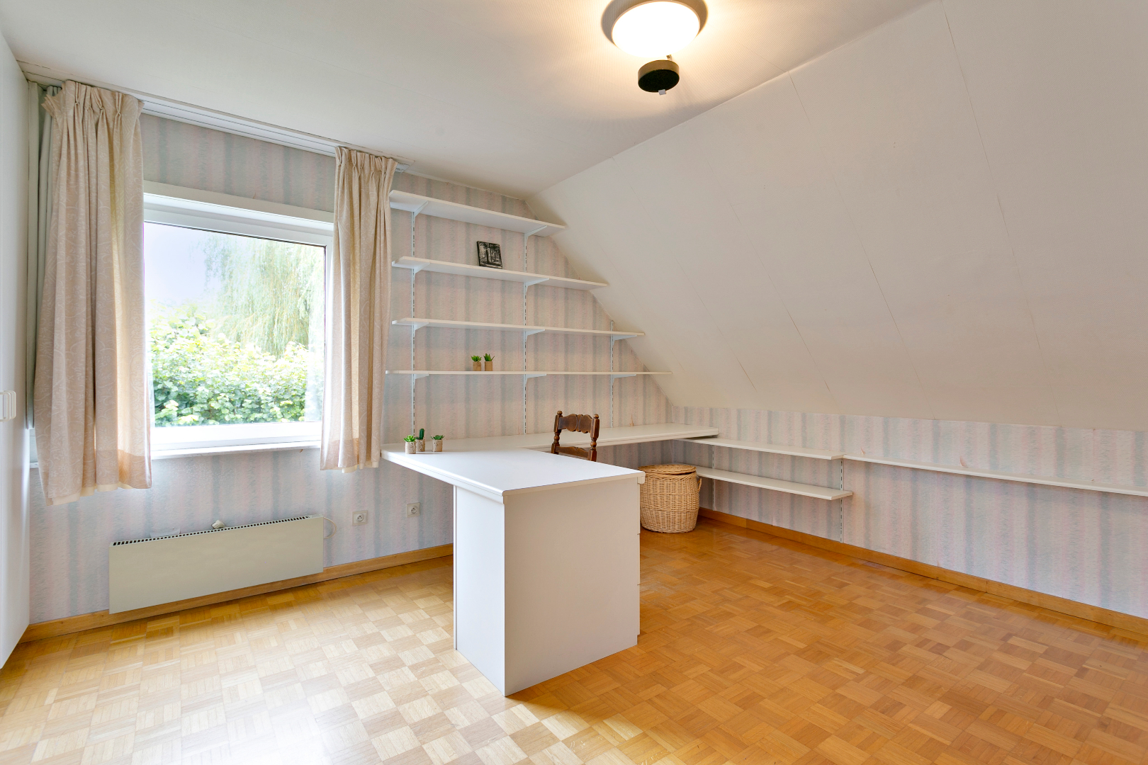 De eerste verdieping beschikt over 6 kamers en 2 badkamers. De grote badkamer met bad en dubbele lavabo is bereikbaar vanuit de master bedroom. Vanuit deze kamer hebben we ook een schitterend zicht op de tuin. De tweede badkamer beschikt over een douche en dubbele lavabo. Ook is er op deze verdieping nog een apart toilet. De zolder biedt heel veel bergruimte.
