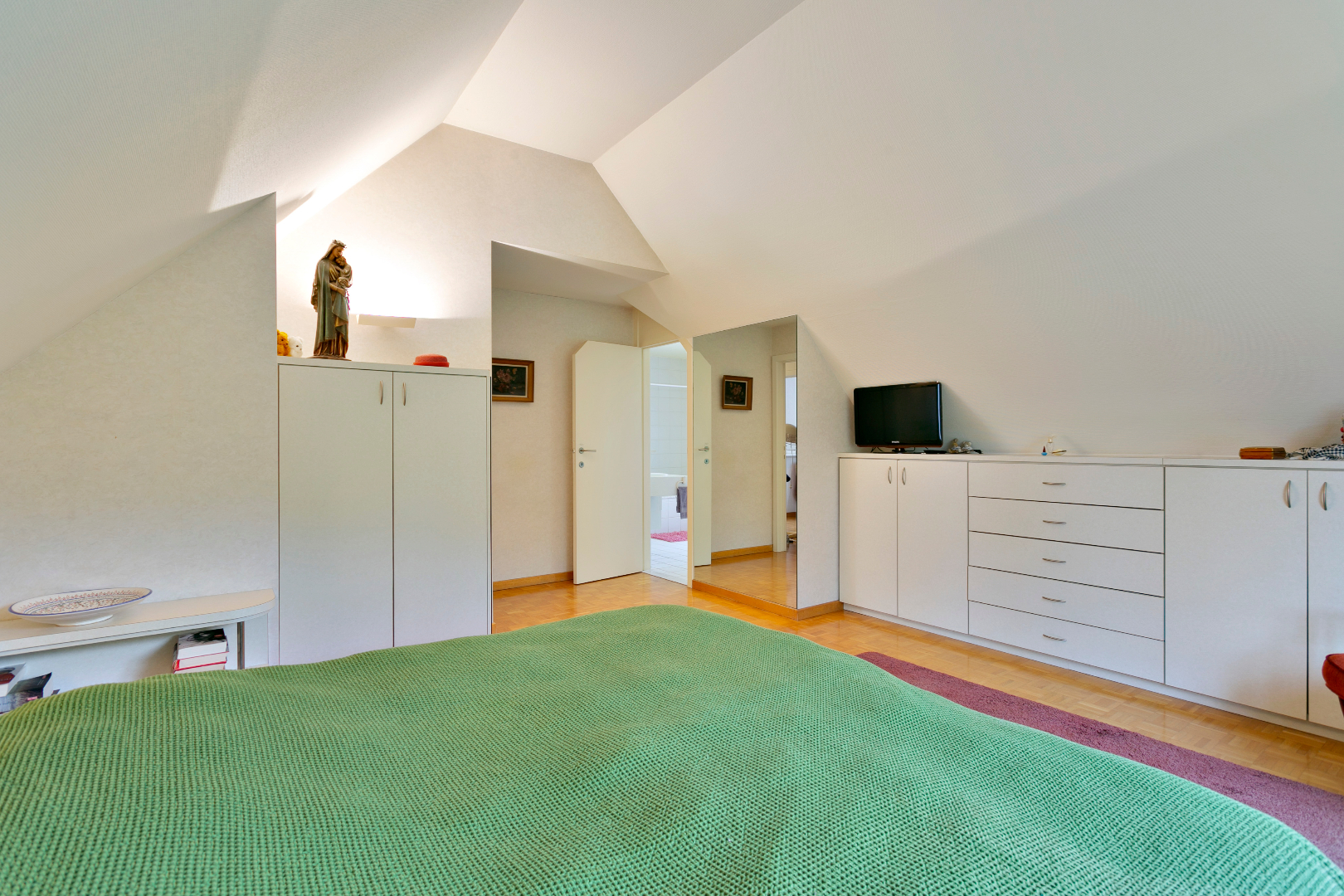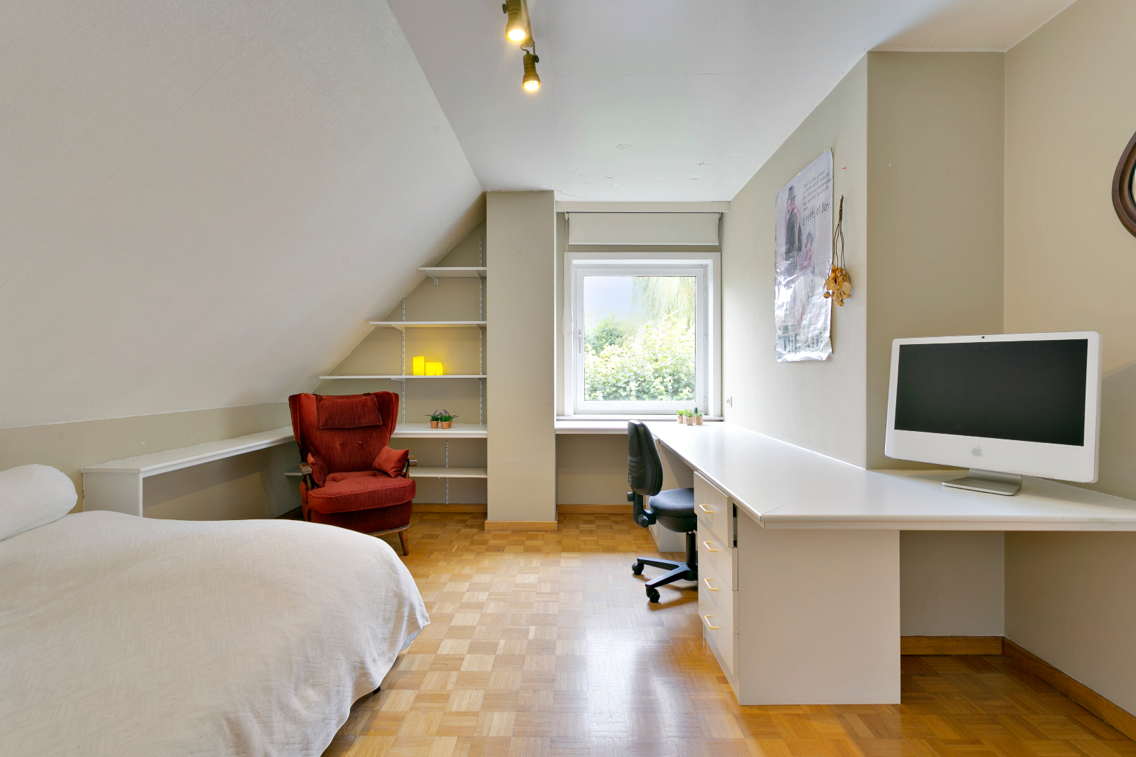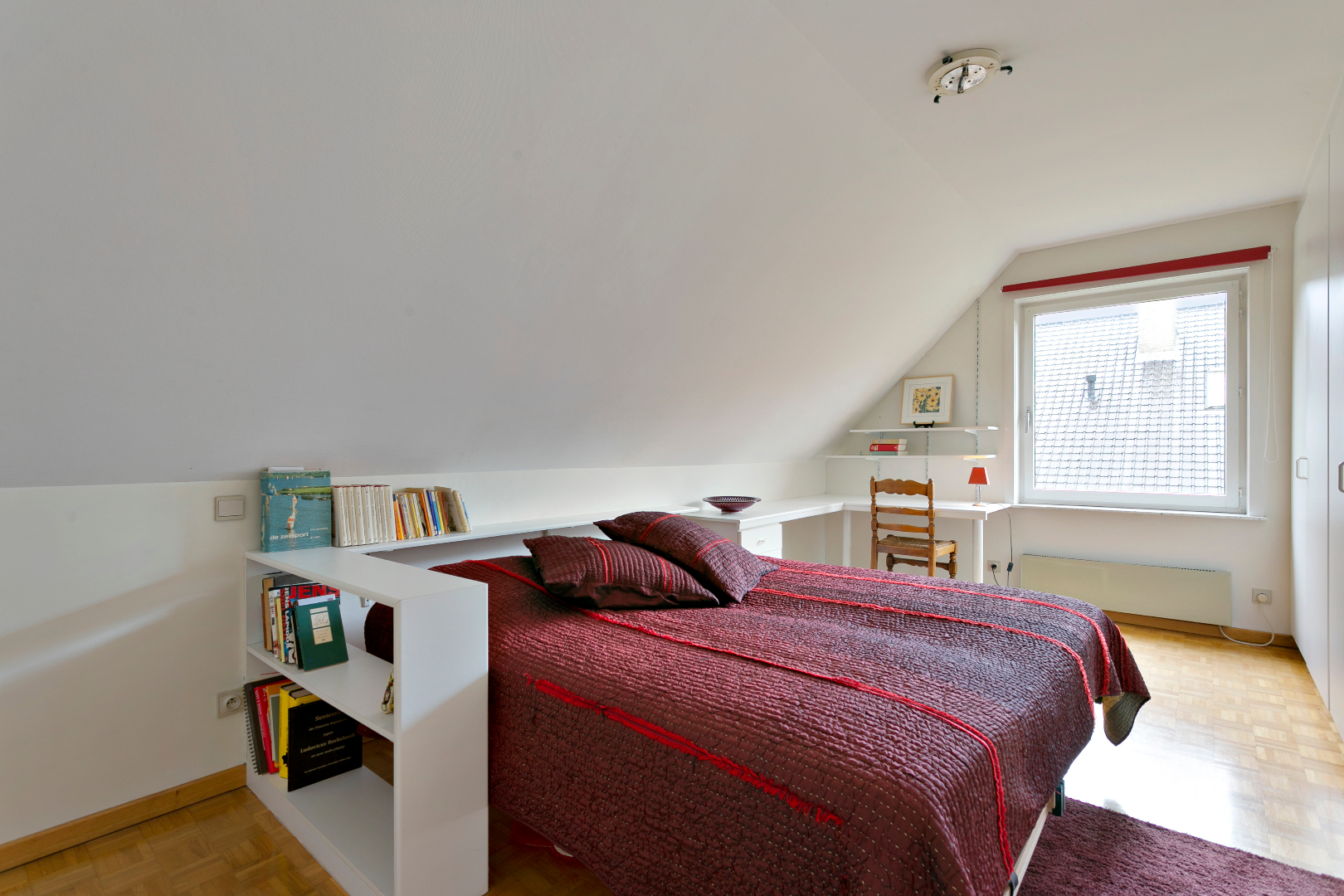 De eerste verdieping beschikt over 6 kamers en 2 badkamers. De grote badkamer met bad en dubbele lavabo is bereikbaar vanuit de master bedroom. Vanuit deze kamer hebben we ook een schitterend zicht op de tuin. De tweede badkamer beschikt over een douche en dubbele lavabo. Ook is er op deze verdieping nog een apart toilet. De zolder biedt heel veel bergruimte.