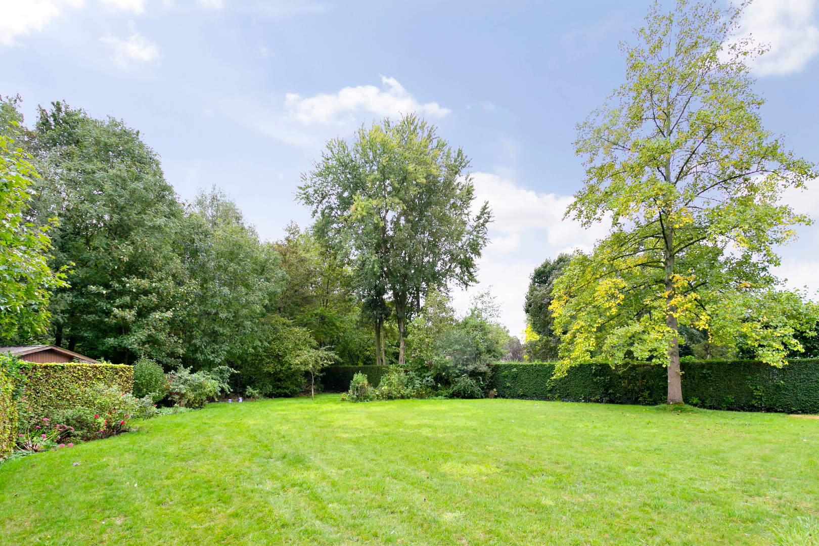 In de zuidoost-gerichte tuin is het de dag rond genieten. De tuin is volgroeid en biedt voldoende plaats om verschillende zonneterrassen en een zwembad aan te leggen.