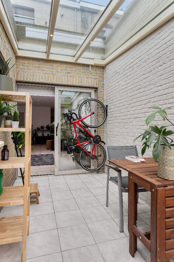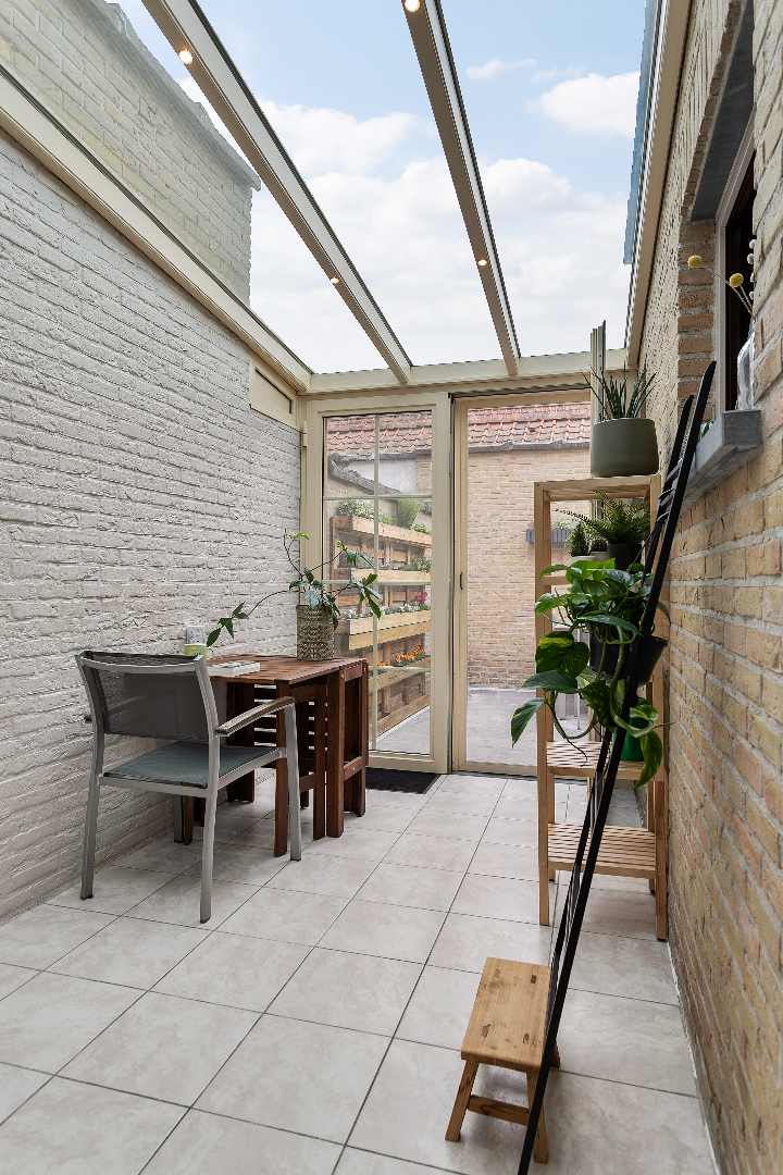 Achteraan vinden we een ruime berging en apart toilet. Vanuit de living kunnen we tevens naar de mooie veranda en komen we zo in de leuke stadstuin. Ideaal voor wie eens buiten wil tijdens de warme zomeravonden, maar geen groene vingers heeft.