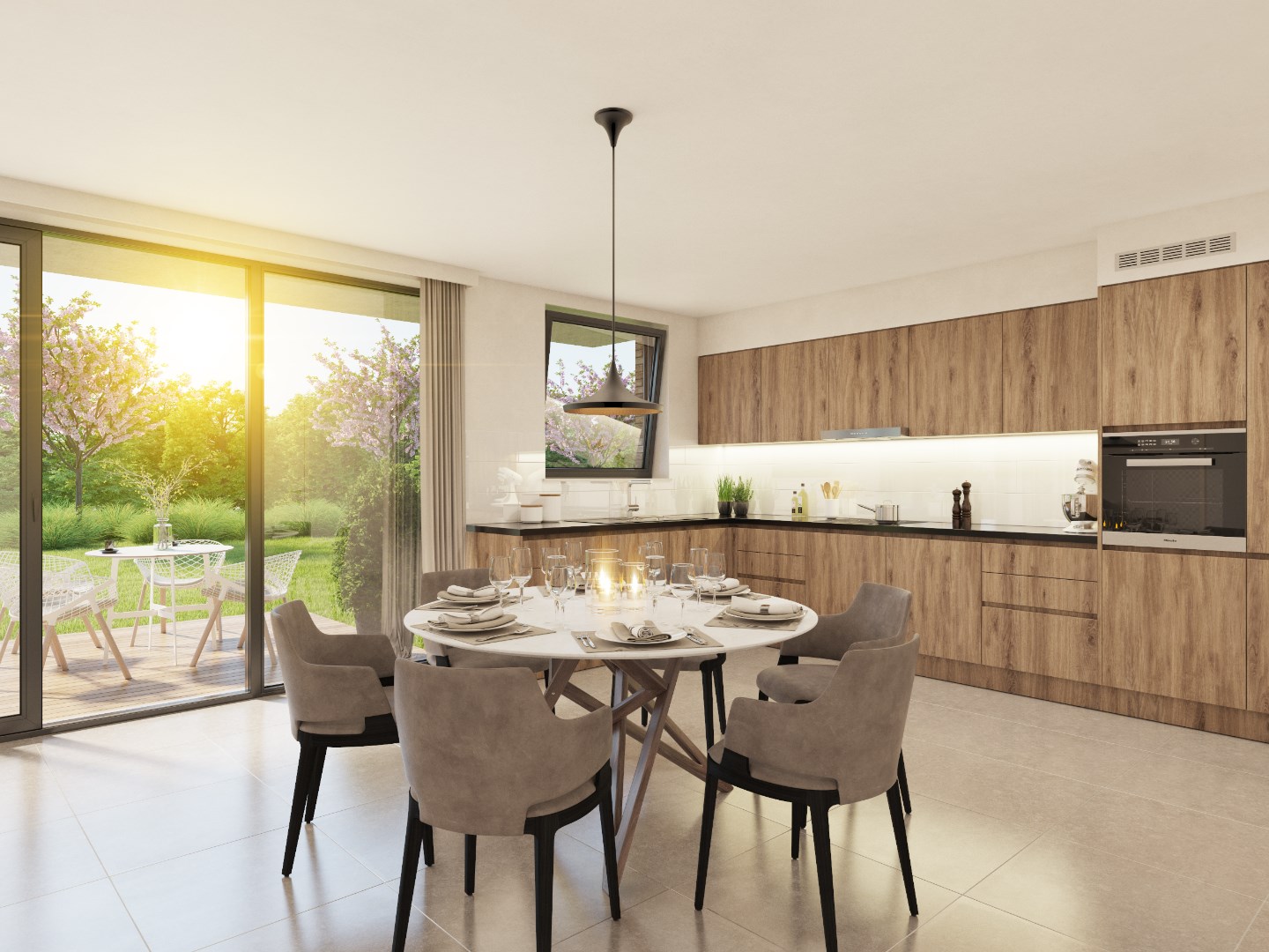 De grote, groene tuin is het paradepaardje van dit unieke woonconcept. U kan er zalig genieten van de wandelpaden en de petanquebaan.