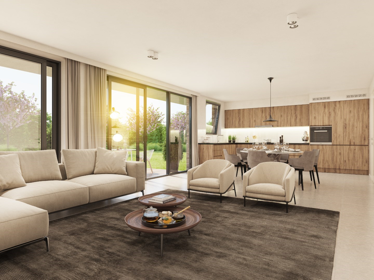 De grote, groene tuin is het paradepaardje van dit unieke woonconcept. U kan er zalig genieten van de wandelpaden en de petanquebaan.